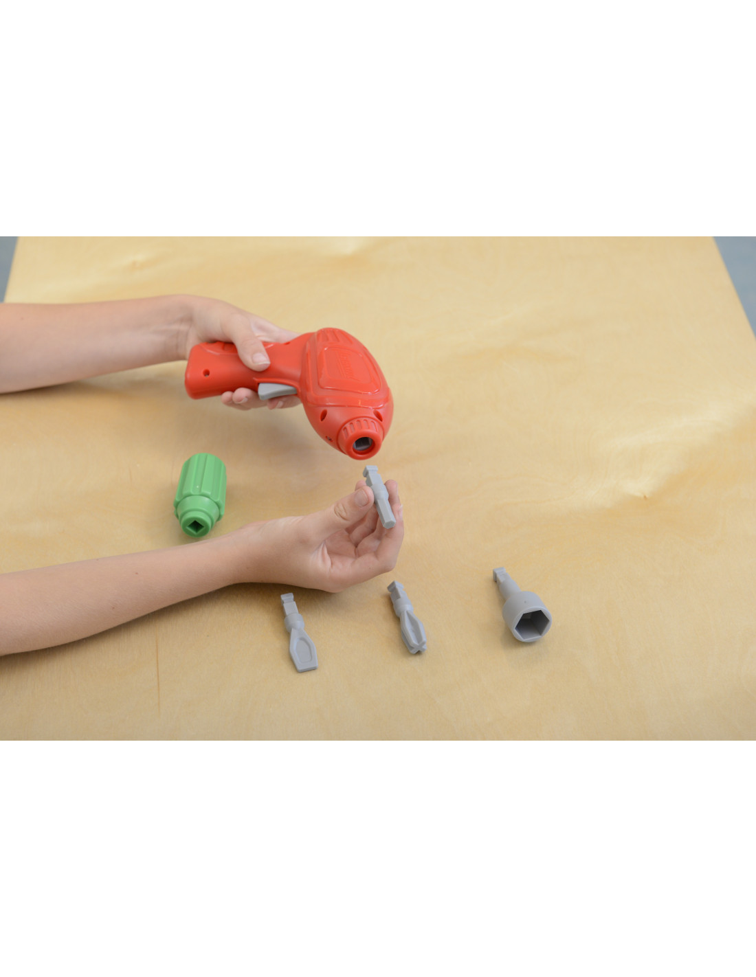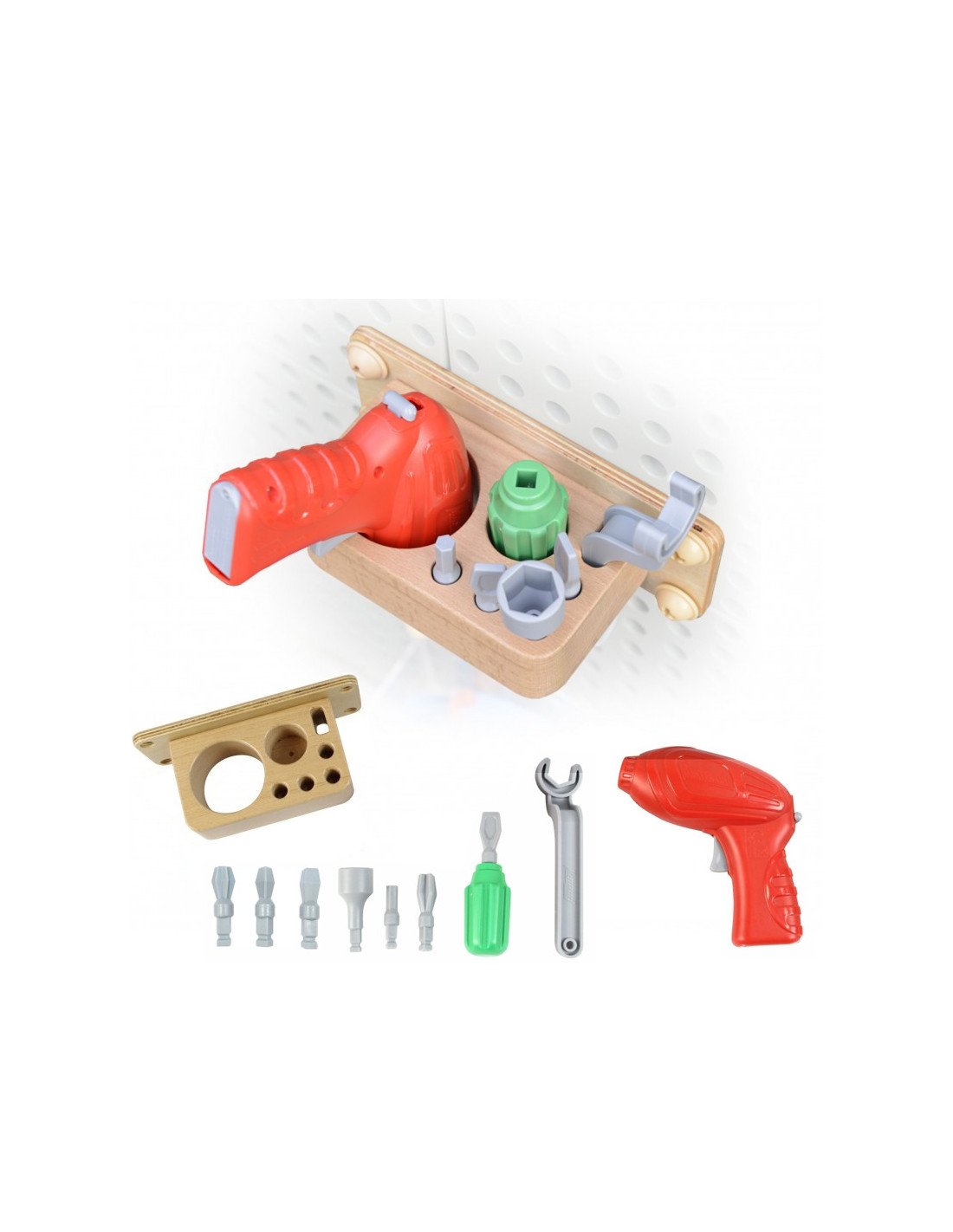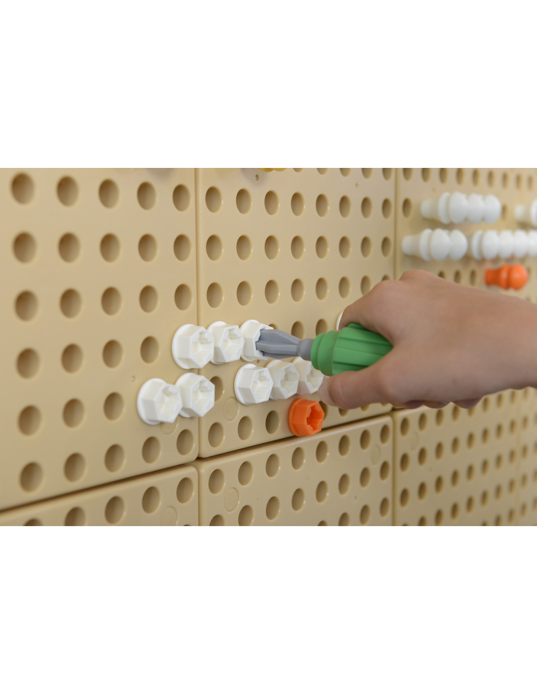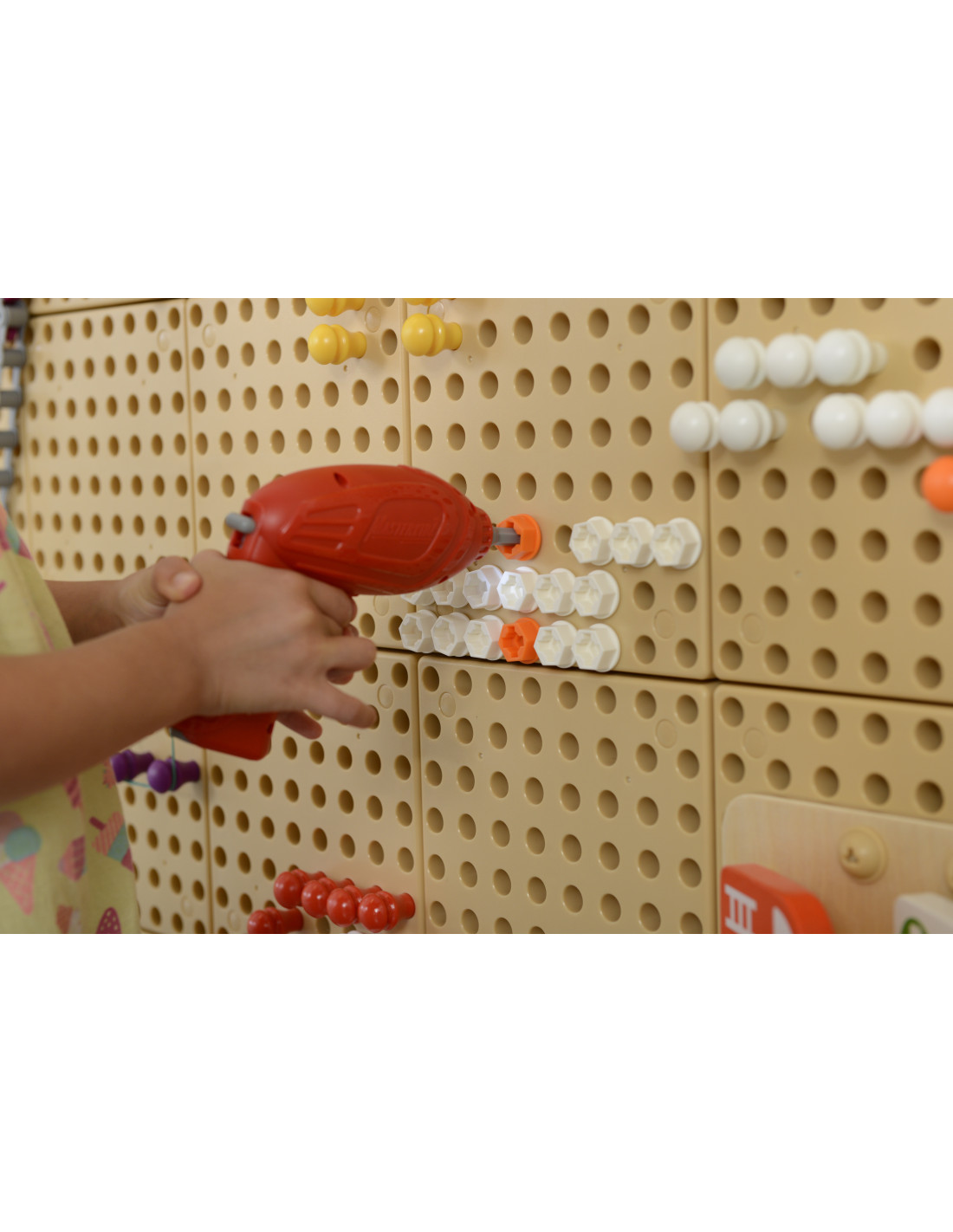 Praktyczny zestaw narzędzi dla dzieci, dzięki którym zabawa ze ścianką Masterkidz STEM będzie dużo ciekawsza! W zestawie śrubokręt z 7 wymiennymi końcówkami, klucz, wkrętarka, oraz półeczka do przechowywania. Narzędzia służą do przykręcania i odkręcania śrub Masterkidz. Zabawka ćwiczy motorykę dzieci, oraz uczy je poprawnego używania podstawowych narzędzi.