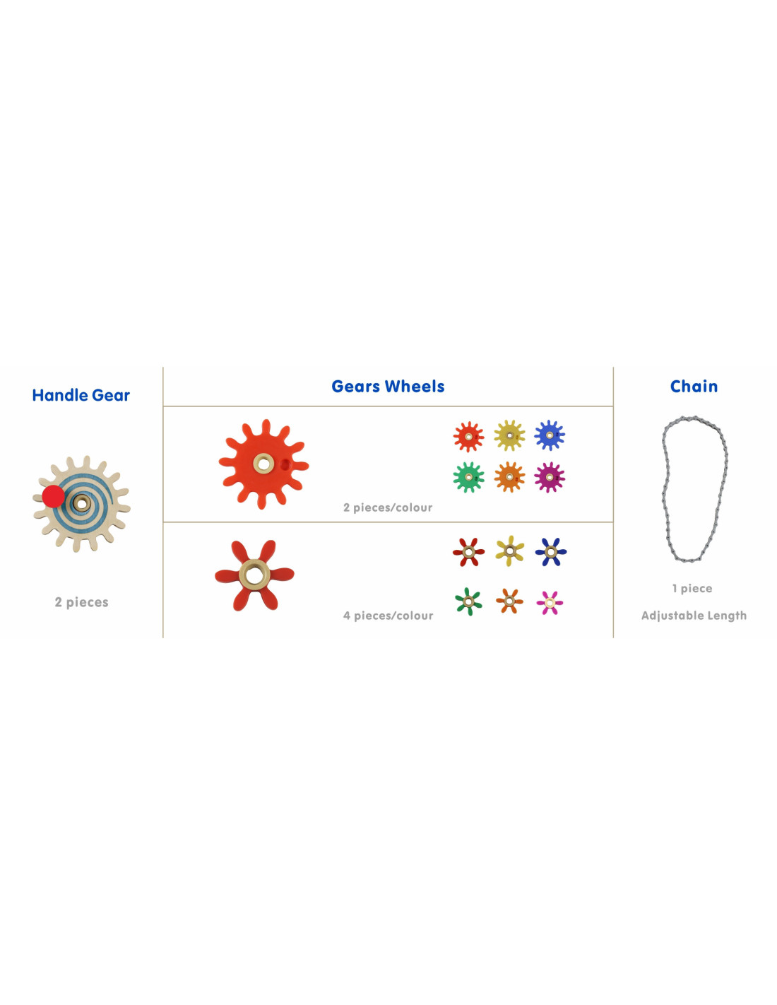 - - 24 colorful gears with 6 teeth