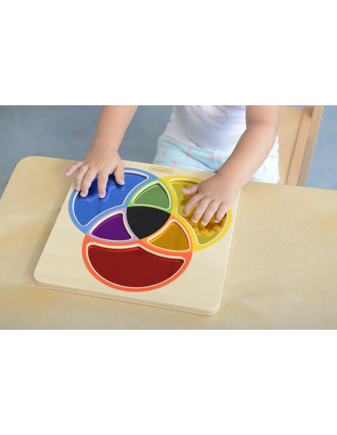 - - The board teaches children how to create other colors from the three basic colors - how to mix colors