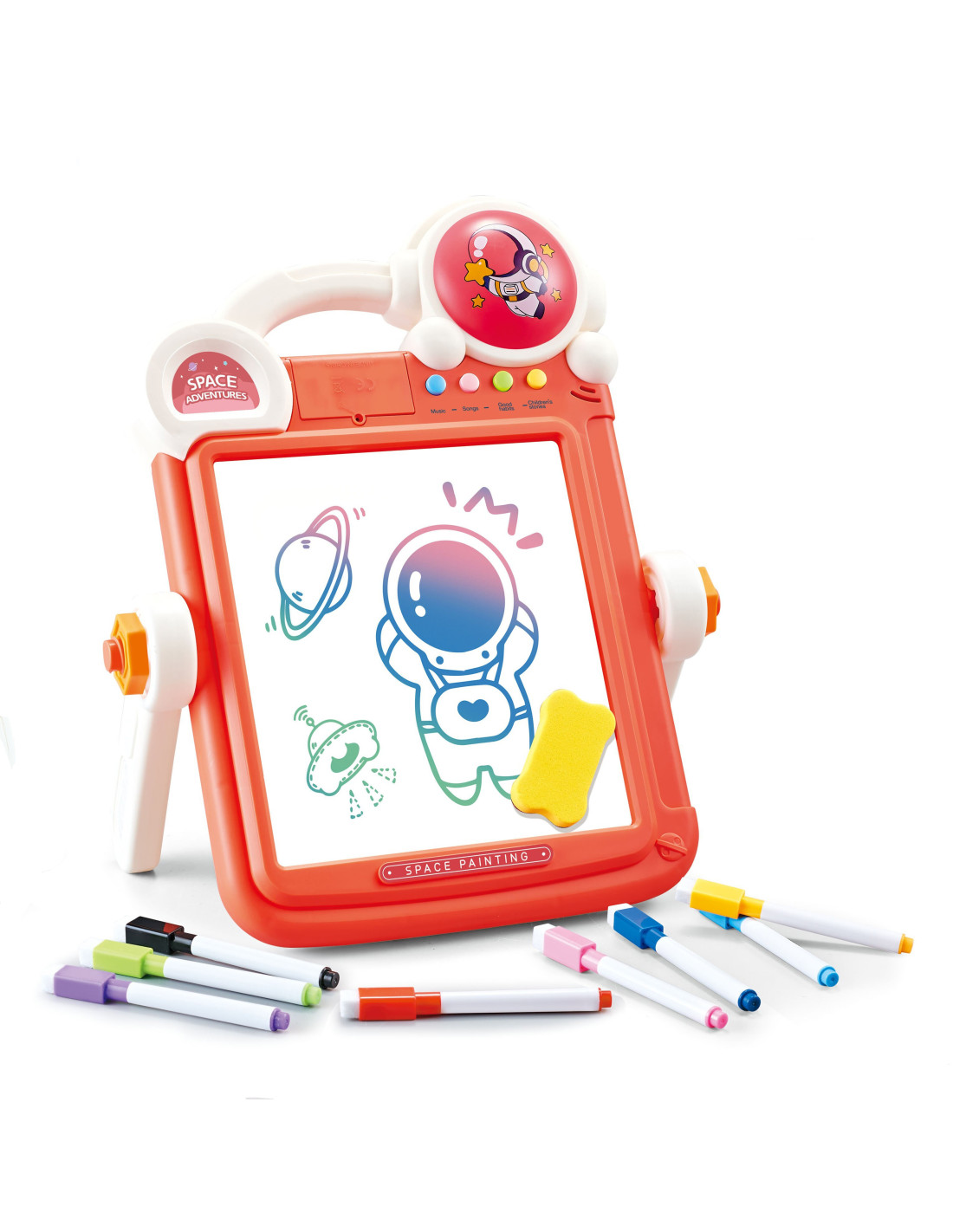 The Woopie Double-Sided Drawing Board and Tetris Game is a 2-in-1 educational puzzle toy that will bring many benefits to your child. The drawing board includes 8 markers , an eraser, and 36 erasable cards for coloring or writing. Four music buttons make drawing more enjoyable. The other side of the board features a fun Tetris puzzle that will engage every child, develop imagination, and creative thinking. The colorful blocks can be stacked vertically, flat, or horizontally to create interesting shapes and images, or separate 3D structures.