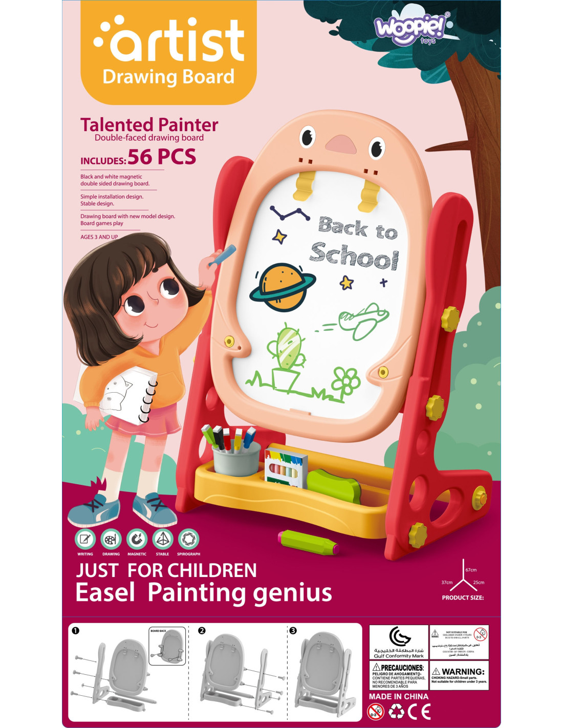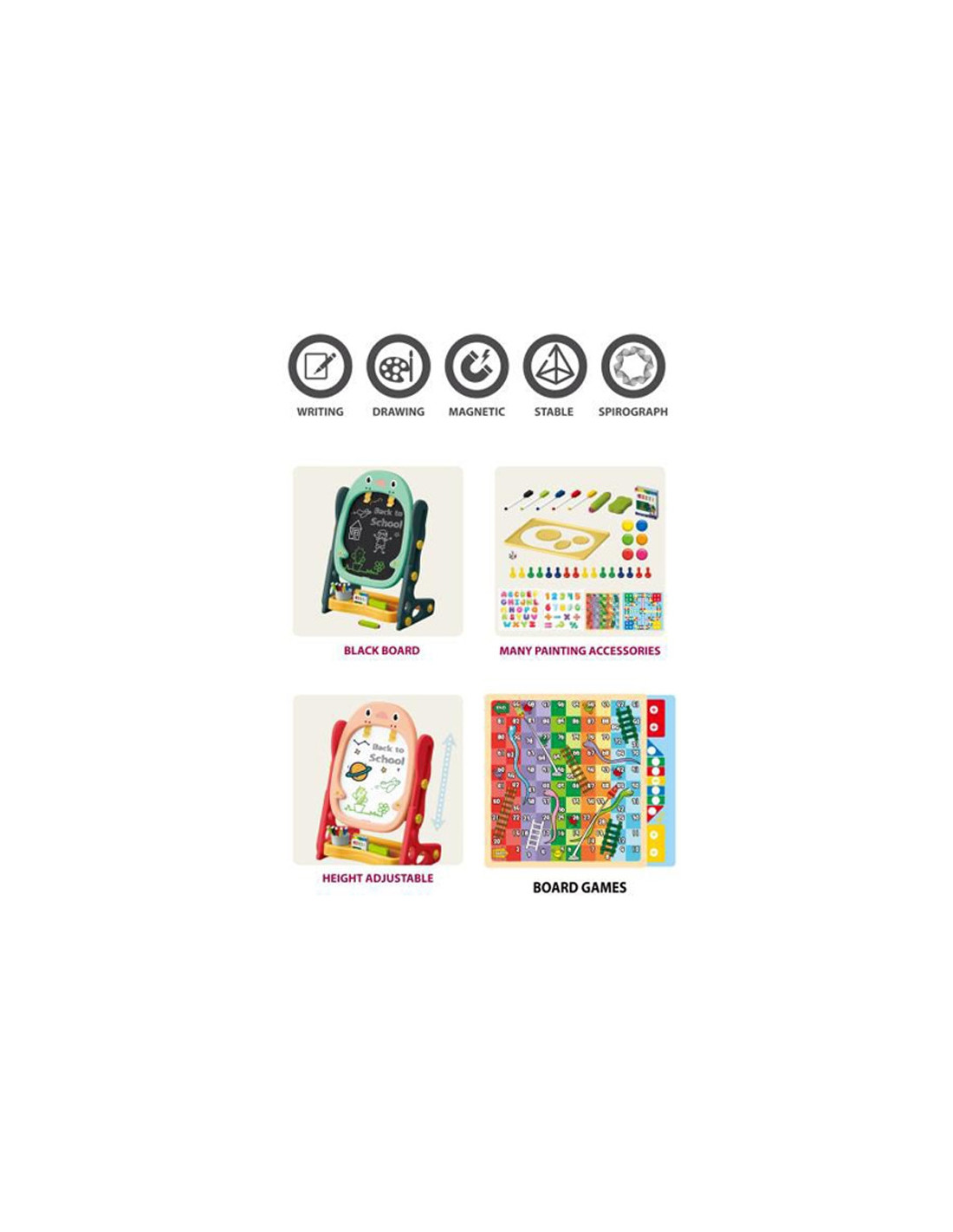 The Double-Sided Magnetic Drawing Board from WOOPIE is a versatile tool for learning and developing artistic skills . The set includes a full set of accessories for versatile use. The board is easy to assemble and features height adjustments , allowing it to be adapted to any child. This toy is essential for a child's daily development .