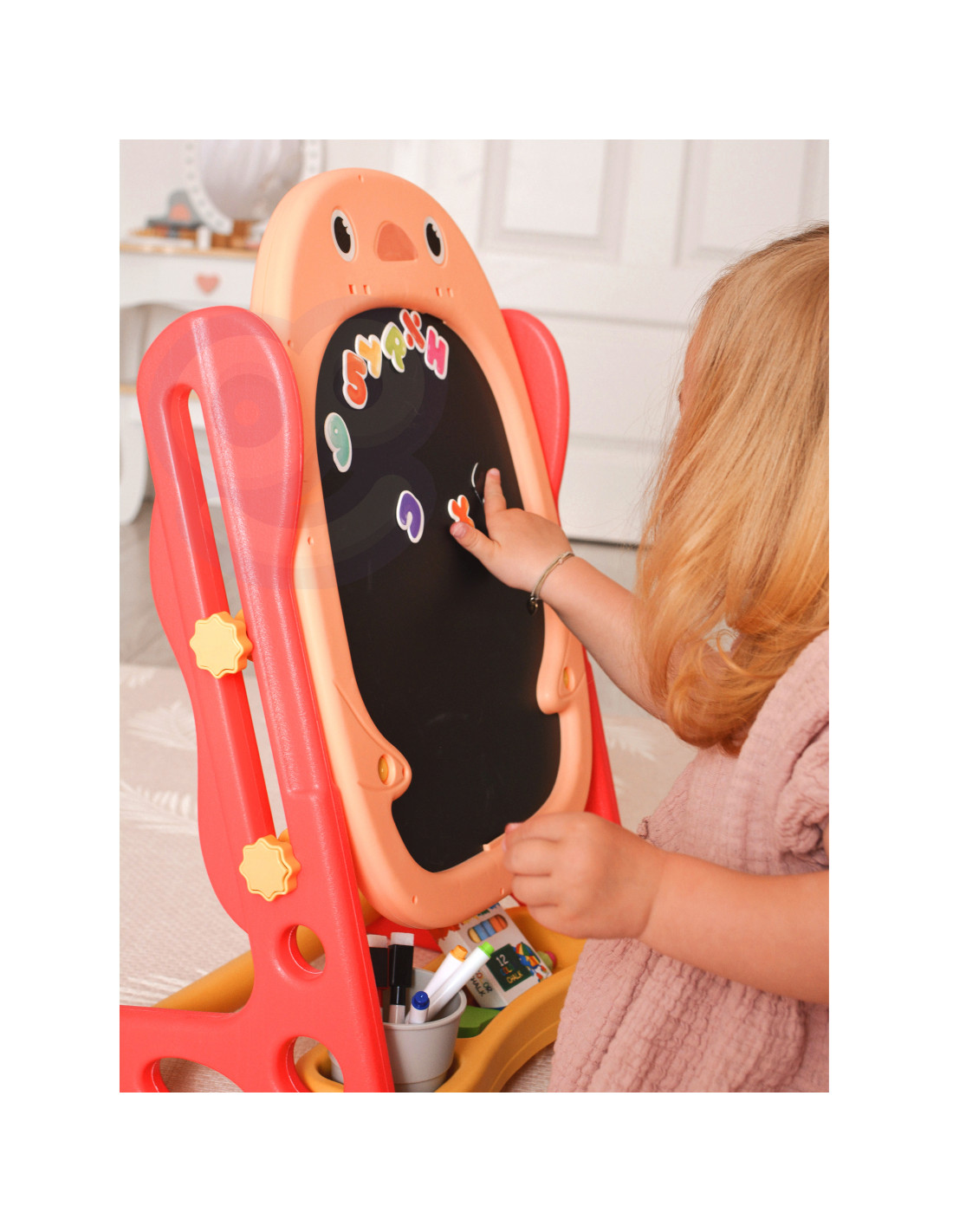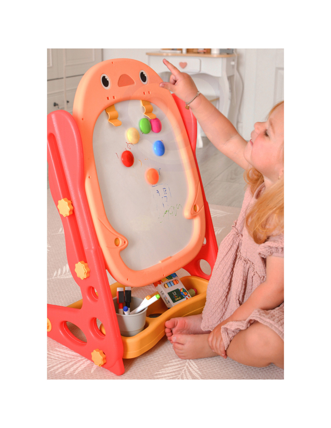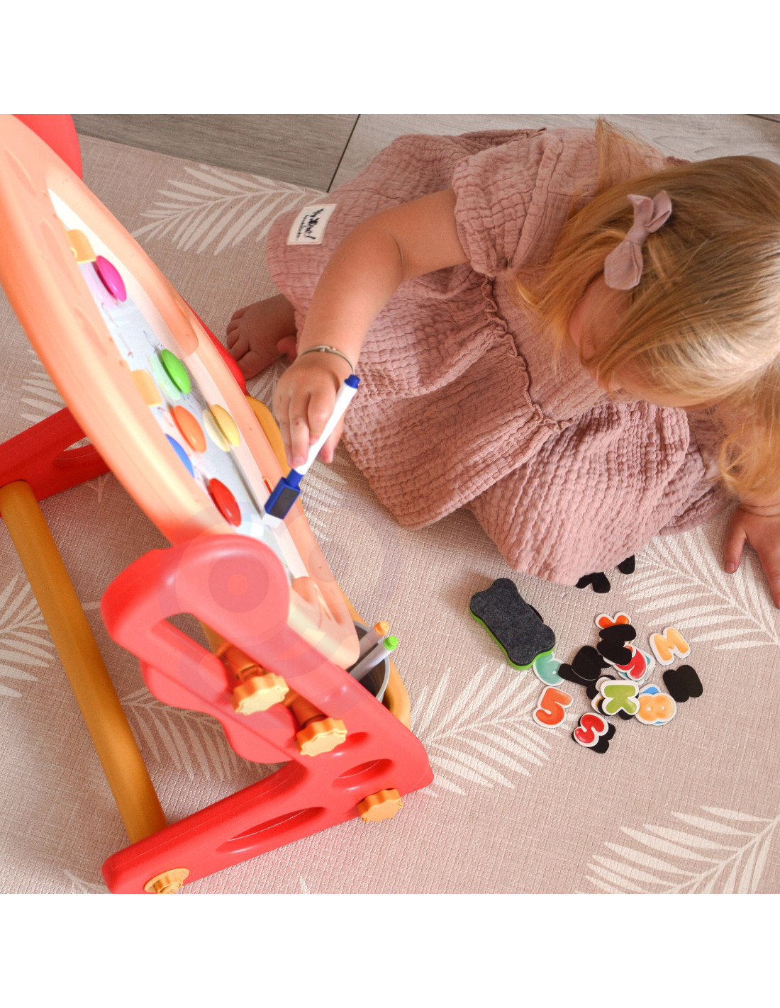 The Double-Sided Magnetic Drawing Board from WOOPIE is a versatile tool for learning and developing artistic skills . The set includes a full set of accessories for versatile use. The board is easy to assemble and features height adjustments , making it adaptable to any child. This toy is essential for a child's daily development .