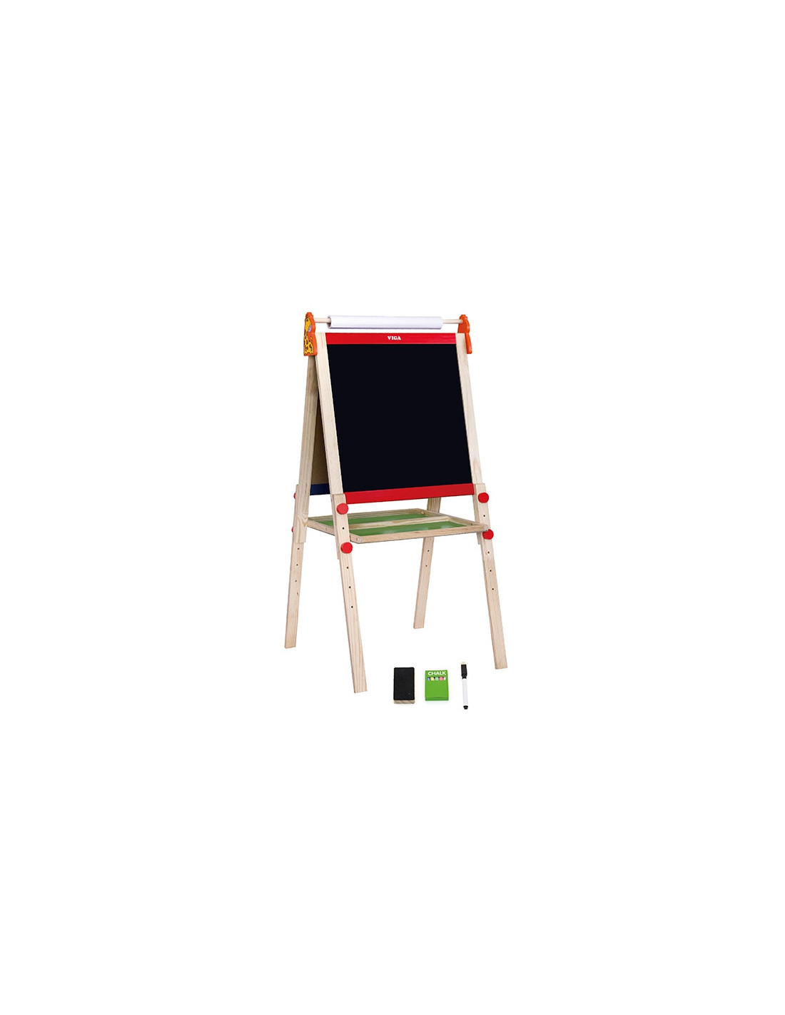 This two-board drawing board from Viga Toys allows you to write with chalk on one board and with a marker on the other. The boards are large and comfortable, and they sit on a stable frame. This is the perfect gift for any child who loves drawing. Creative play sparks imagination and enhances artistic skills.