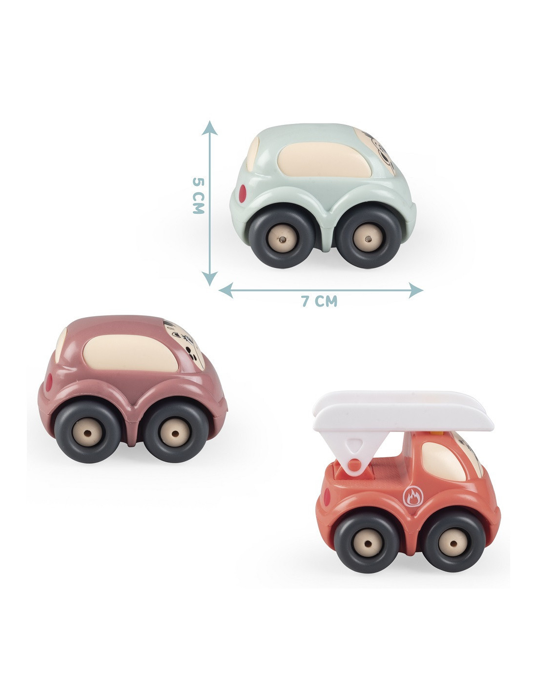- - inside there are 2 city cars with images of animals and a fire truck with a ladder,