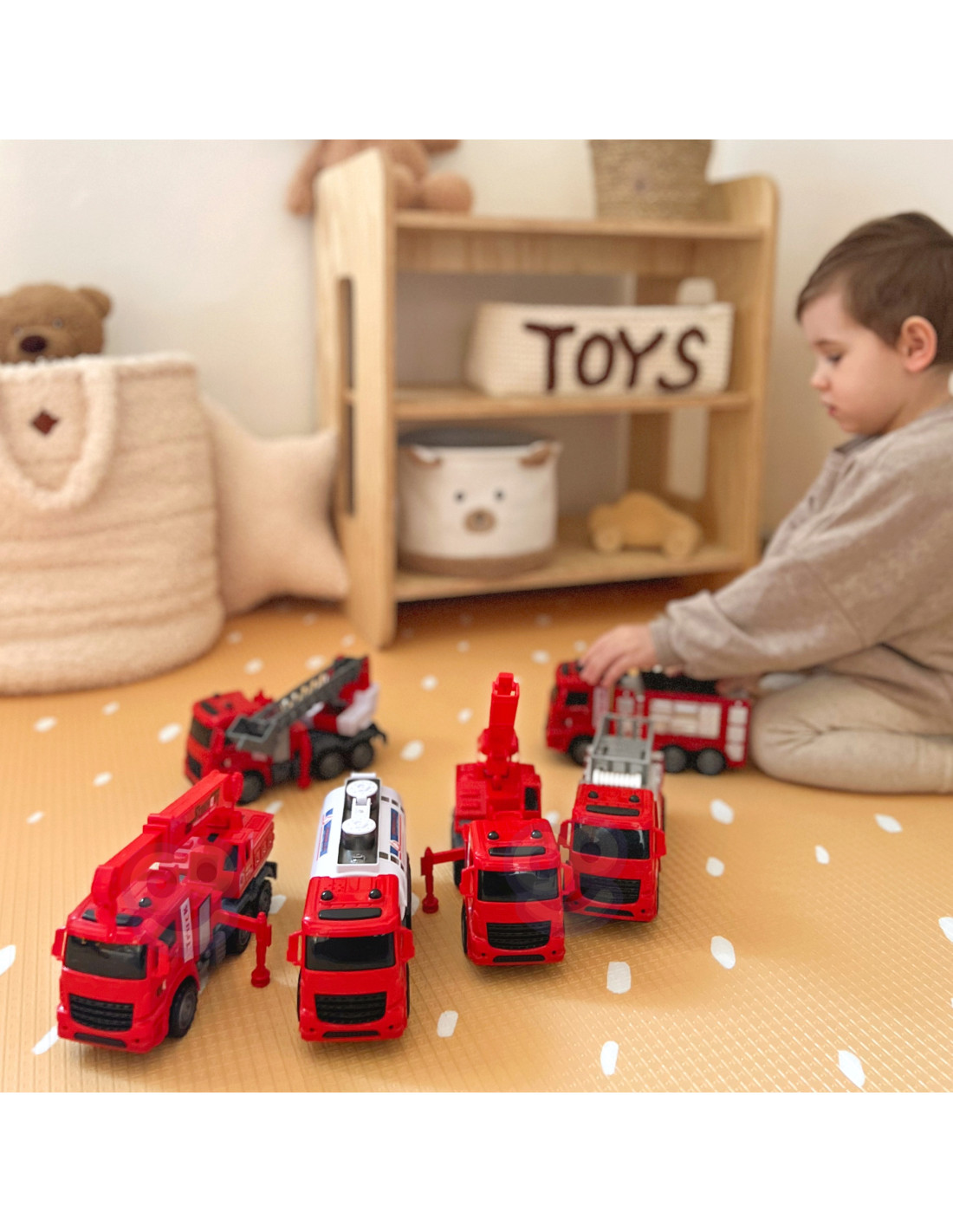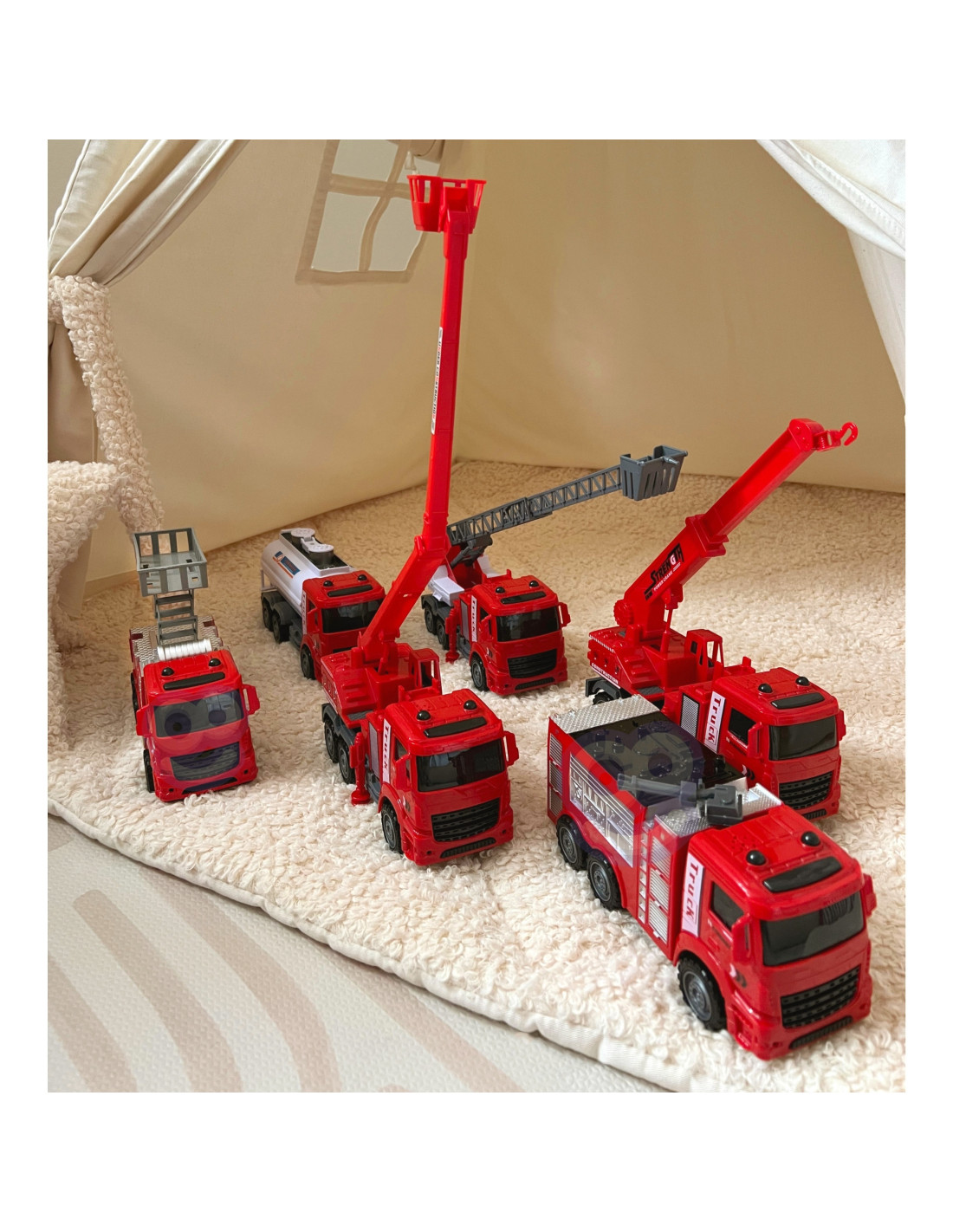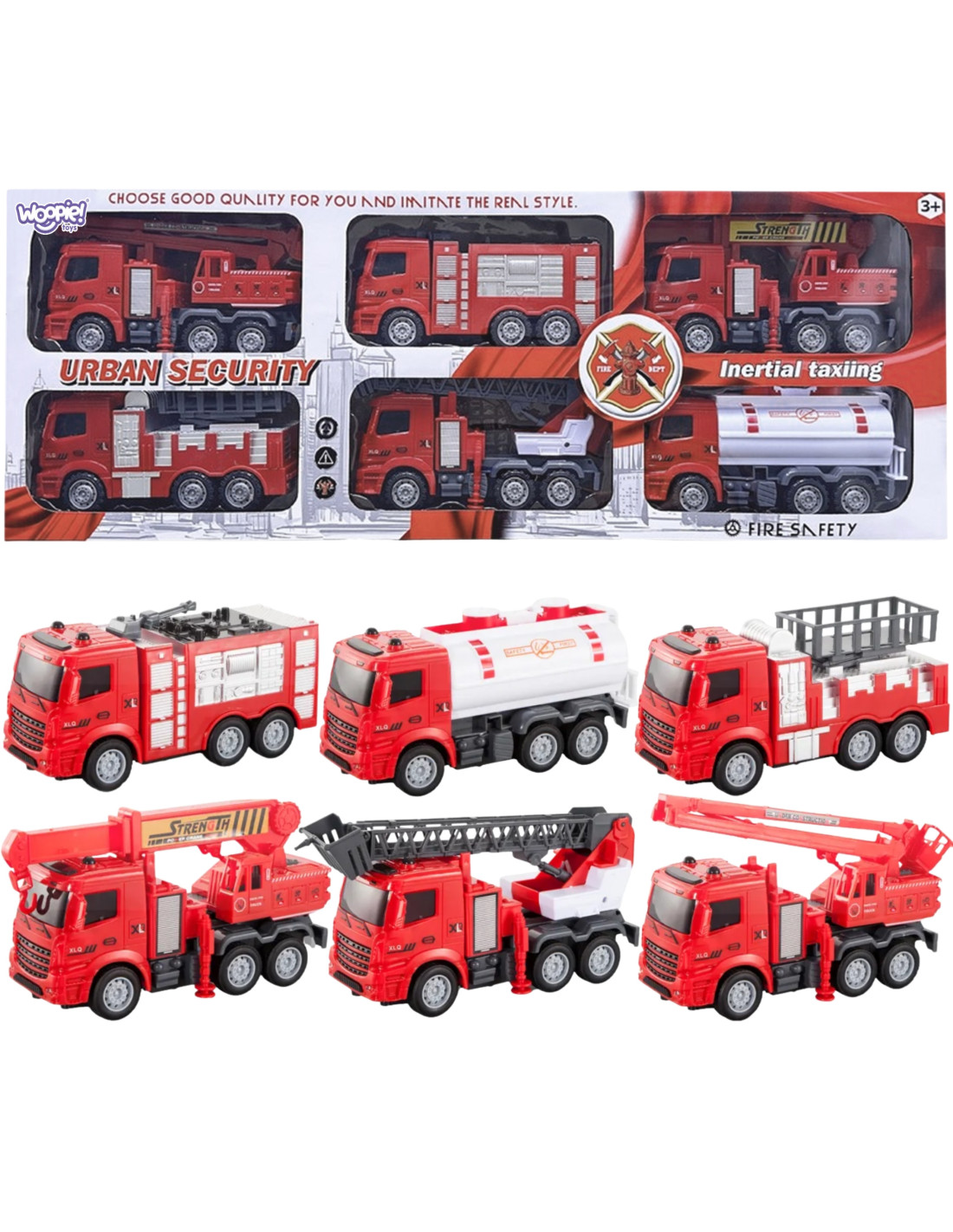 The HUGE 6-in-1 Fire Truck Set from WOOPIE is the perfect set for little rescuers and firefighter adventurers ! This set features large models of various fire trucks , replicating real-life vehicles used in firefighting and rescue operations. With these toys, kids can take on the role of heroes saving the world and experience exciting, action-packed moments . This wonderful, large set will not only provide your child with countless hours of fantastic play, but also inspire their imagination and creativity . This set is a great way to creatively develop a child's imagination, practice cooperation, and build self-confidence. Furthermore, playing as a firefighter is also a great opportunity to learn values such as courage, helping others, and responsibility.