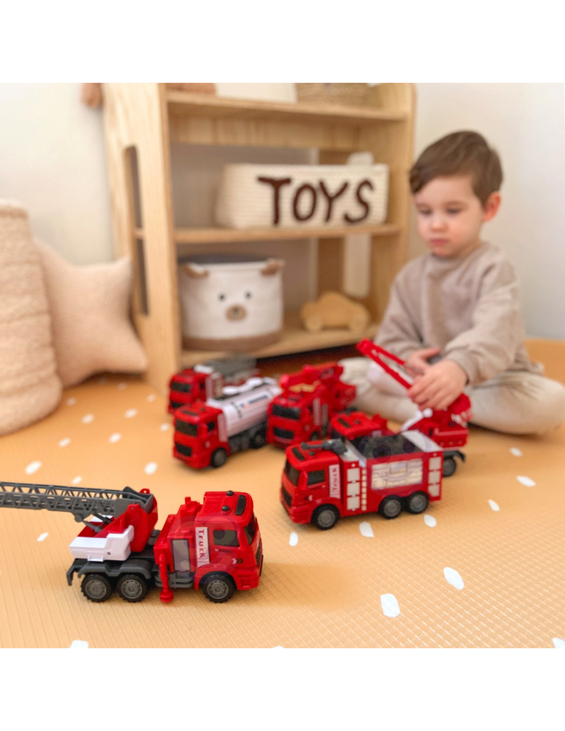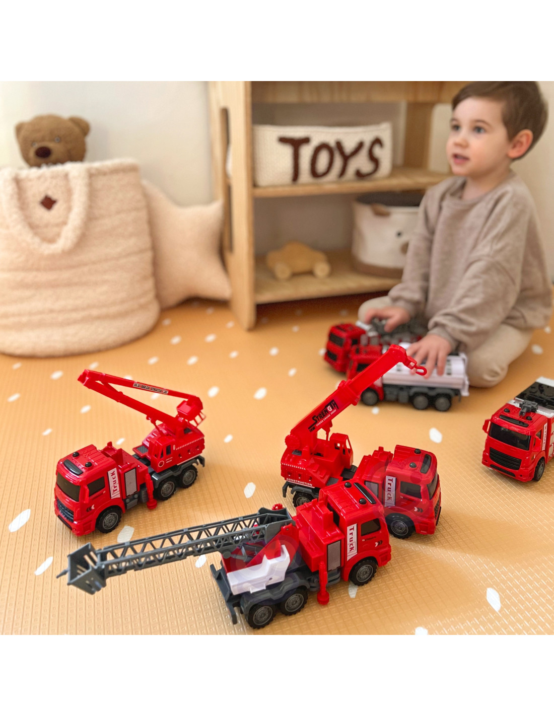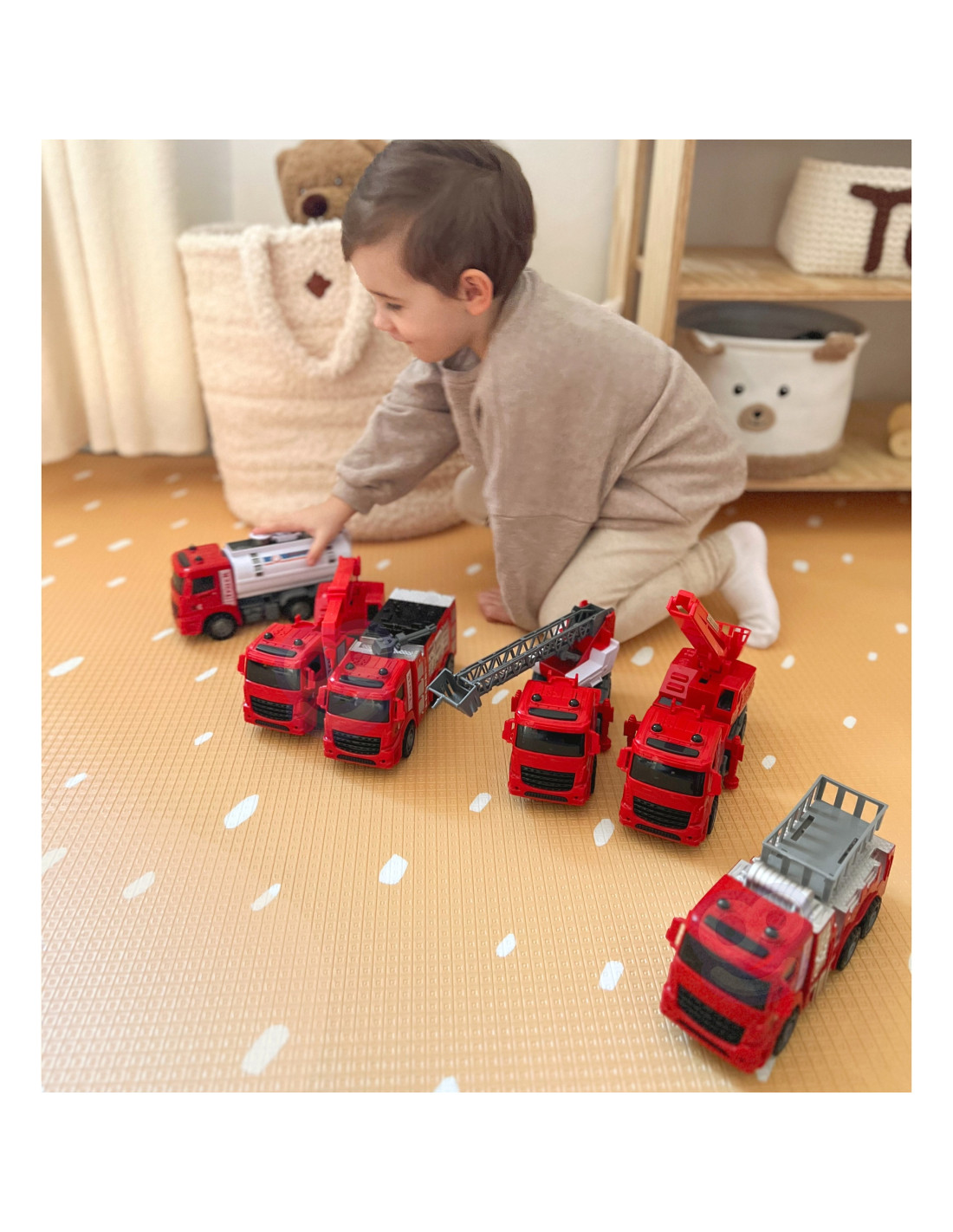 The HUGE 6-in-1 Fire Truck Set from WOOPIE is the perfect set for little rescuers and firefighter adventurers ! This set features large models of various fire trucks , replicating real-life vehicles used in firefighting and rescue operations. With these toys, kids can take on the role of heroes saving the world and experience exciting, action-packed moments . This wonderful, large set will not only provide your child with countless hours of fantastic play, but also inspire their imagination and creativity . This set is a great way to creatively develop a child's imagination, practice cooperation, and build self-confidence. Furthermore, playing as a firefighter is also a great opportunity to learn values such as courage, helping others, and responsibility.