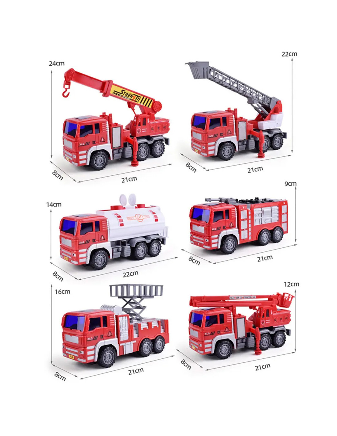 - - Fire truck: 8x21x10 (cm)