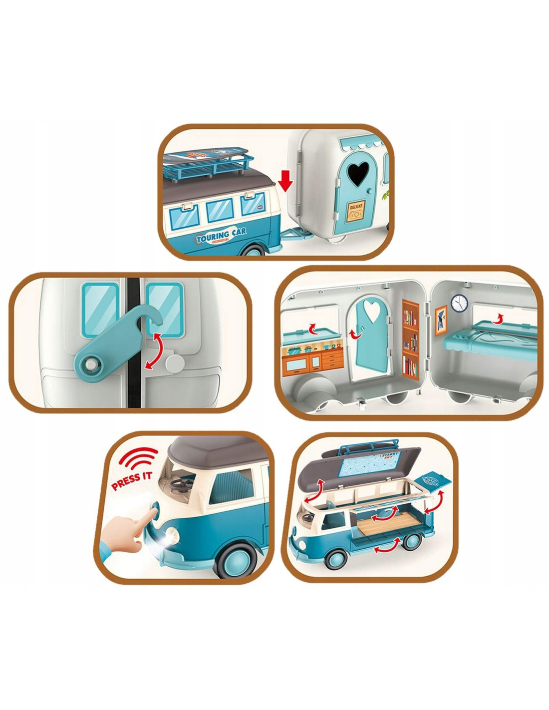Open the door to a world of incredible adventures with the unique Woopie camper trailer! This colorful, retro -style toy is perfect for little explorers who love creative play. Featuring opening elements, a realistic interior, and light and sound effects, this camper trailer will make every trip unforgettable. It's a great gift idea that will delight any child!