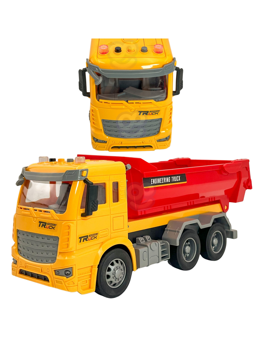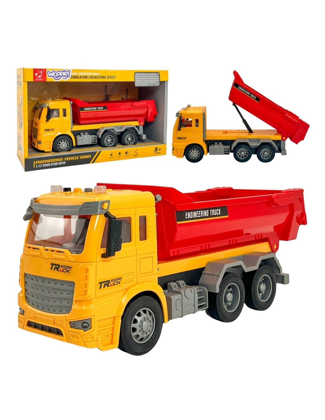 Introduce your child to the fascinating world of construction with this realistic construction dump truck from Woopie! This impressive, large toy is not only a faithful replica of the real thing , but also a source of endless creative play. Thanks to the moving trailer and light and sound effects , every trip to the construction site will become an unforgettable adventure. The dump truck is equipped with lights on the cab roof , which add dynamic and realistic play. A built-in range of engaging vehicle sounds , children's songs and melodies , stories , and old poems allows your child to absorb a variety of early childhood learning elements while playing. Perfect for little engineers and builders who love action and dynamics!