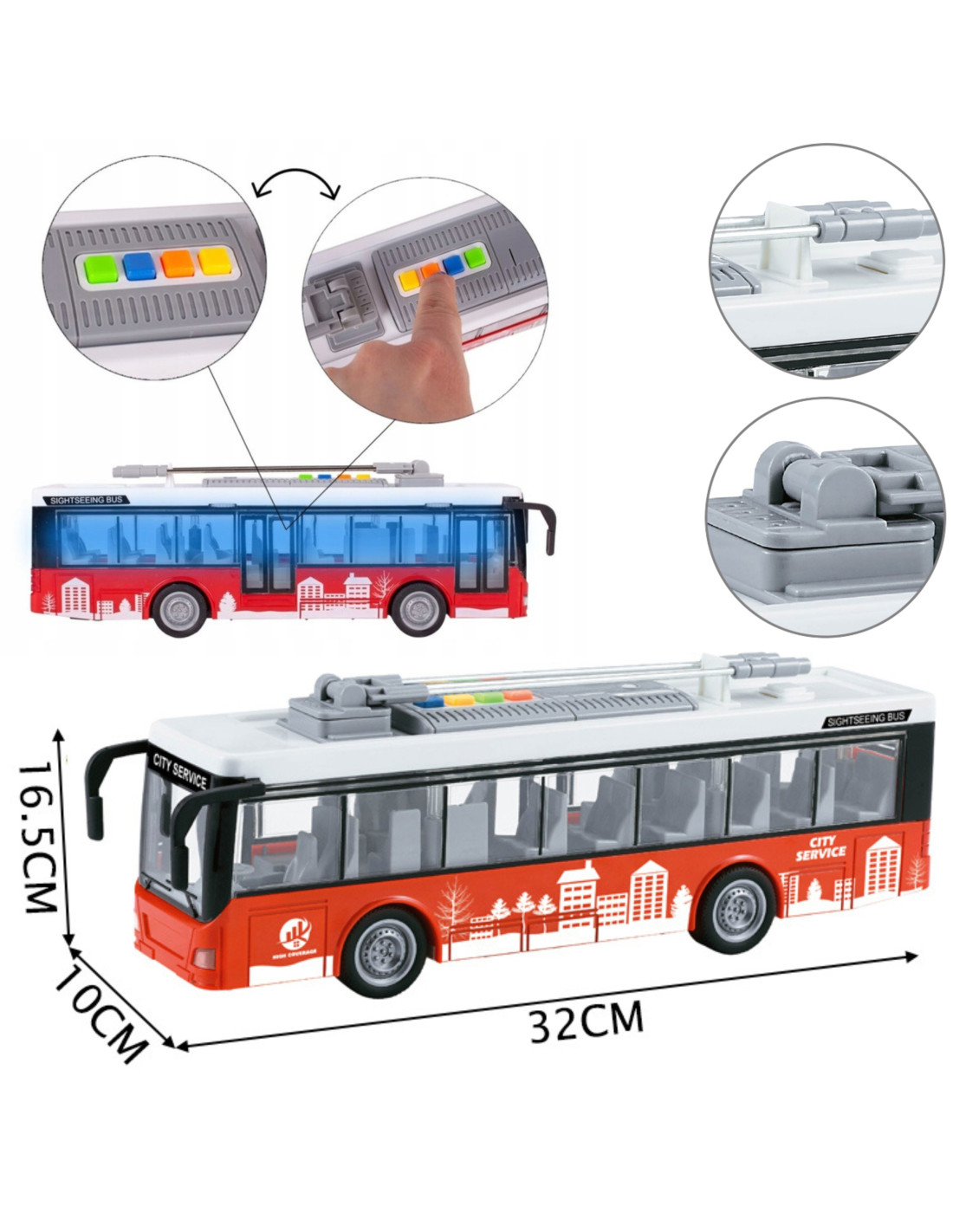 - - Sound effects – after pressing one of the four buttons on the vehicle's roof, the trolleybus produces realistic driving sounds, signals and announcements