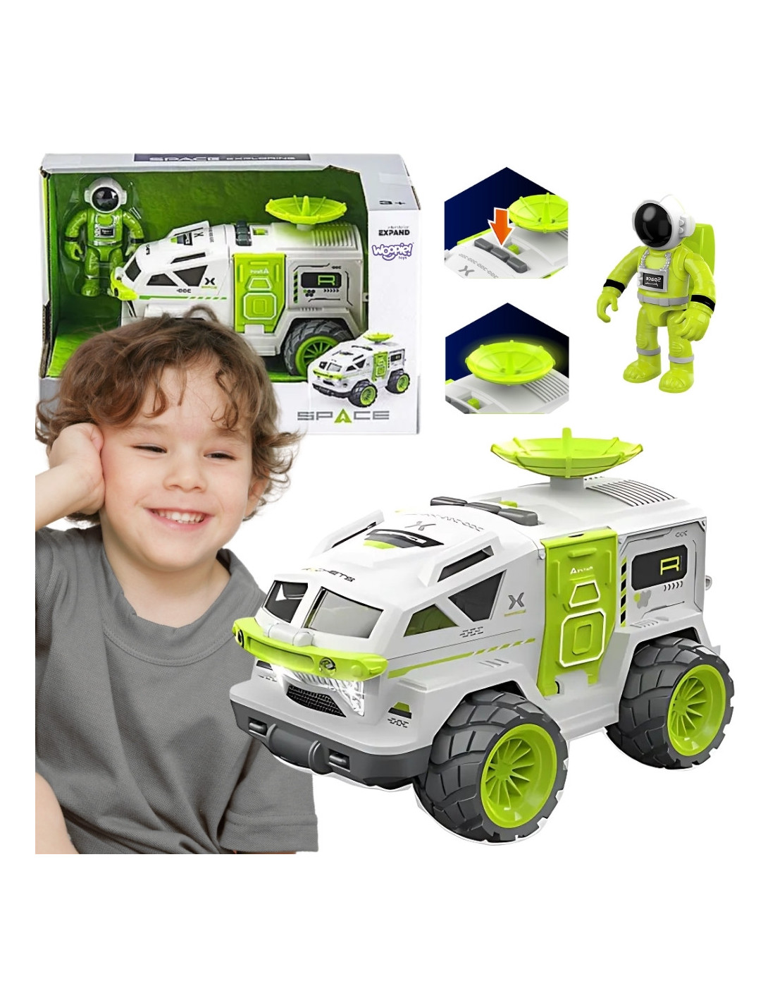 Let your child enter the fascinating world of interstellar travel with the Woopie Large Space Rover – it's not just a toy, but a true command center for any child's space mission! This incredibly detailed vehicle will transport little explorers straight to the surface of an alien planet, where they can collect data, survey the terrain, and contact base thanks to realistic features like a rotating radar , opening windshield , and interactive lights and sounds . Designed for safe and creative play, the vehicle is made of durable ABS plastic, which ensures resistance to impact and heavy use by little hands. Wide, rubber-coated wheels with all-terrain tread allow it to traverse any room, garden, or playground, adding a whole new dimension to play. Pressing a button activates light and sound effects , making children feel like real astronauts on a dangerous exploration mission. What's more, the rotation of the vehicle's wheels automatically sets the satellite dish on the roof in motion – this mechanical solution delights children and develops their curiosity about how devices work. The vehicle's front lights illuminate shaded spaces. The set also includes a green astronaut figure that fits perfectly in the vehicle's cockpit. This toy is a great tool for fostering imagination, cognitive skills, and scientific interests – all through carefree, creative play!
