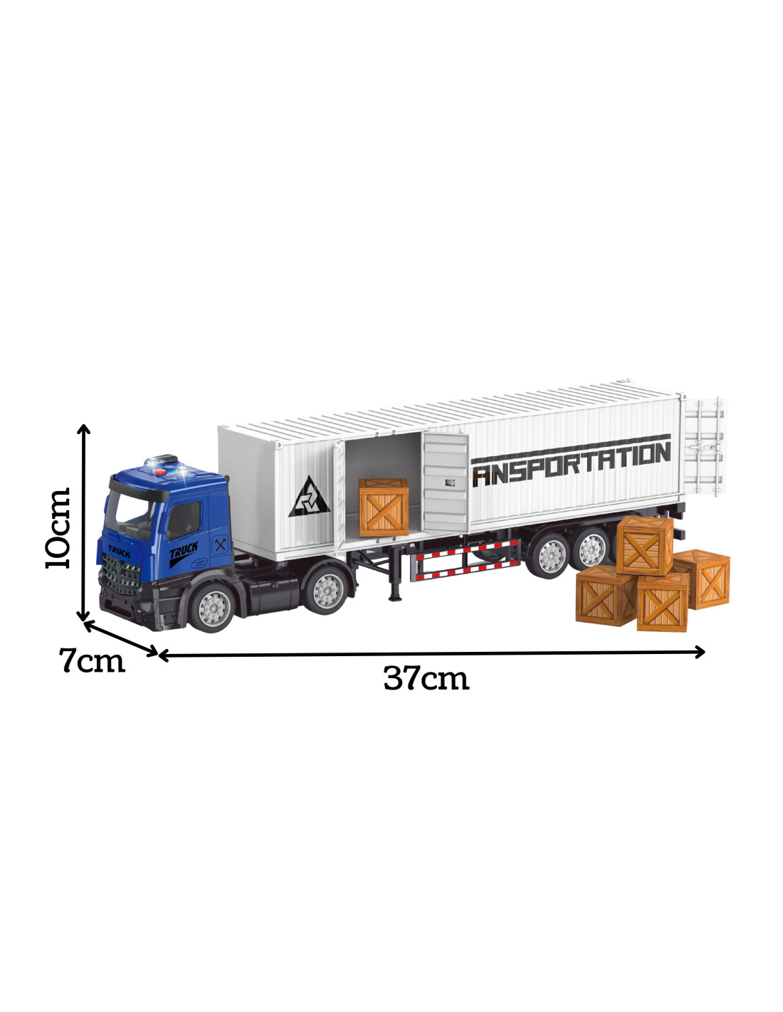 - - Movable elements – detachable trailer and opening container doors for increased interactivity.