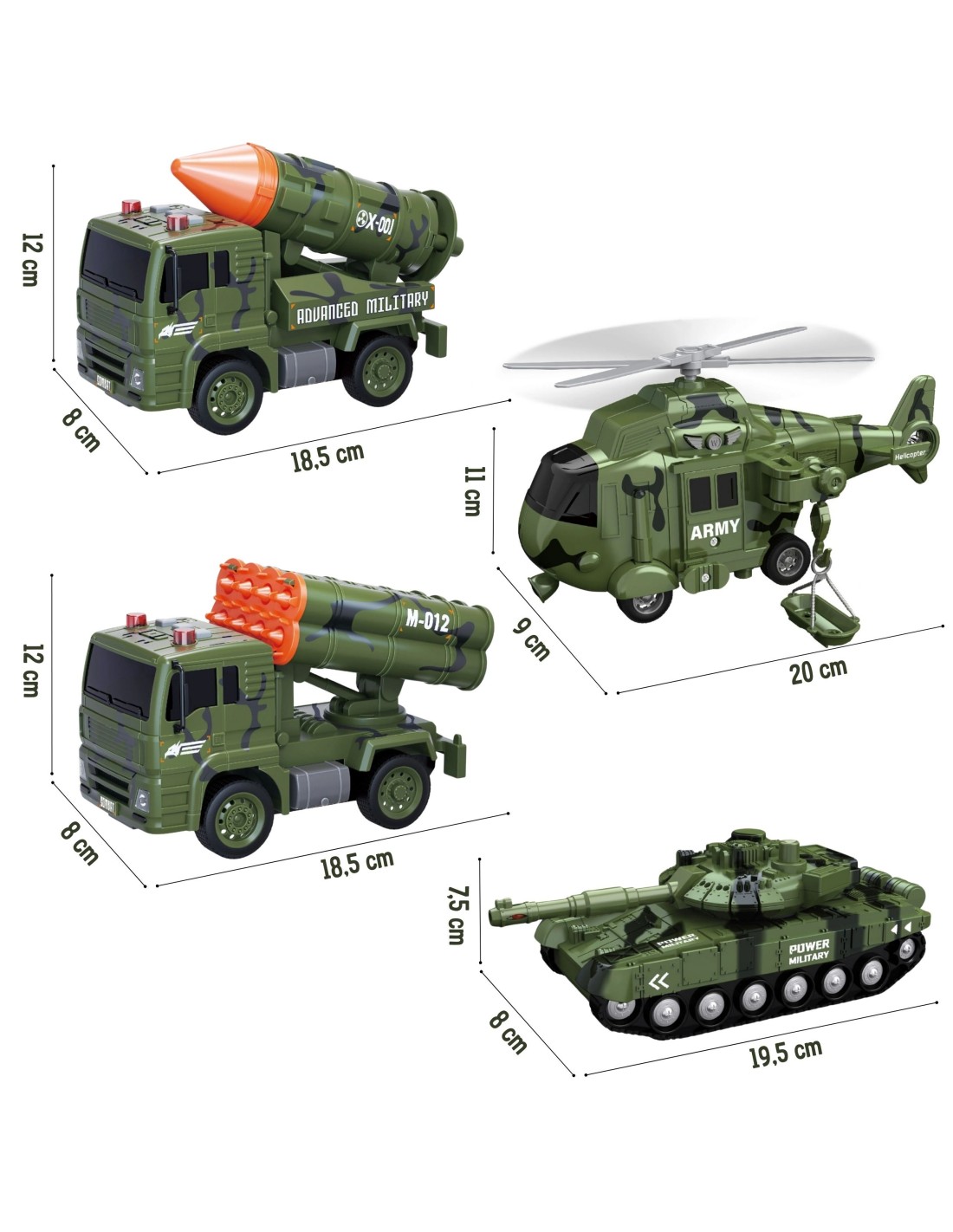 WOOPIE Military Vehicle Set with Launcher Tank Helicopter 4 pcs Scale 1:20