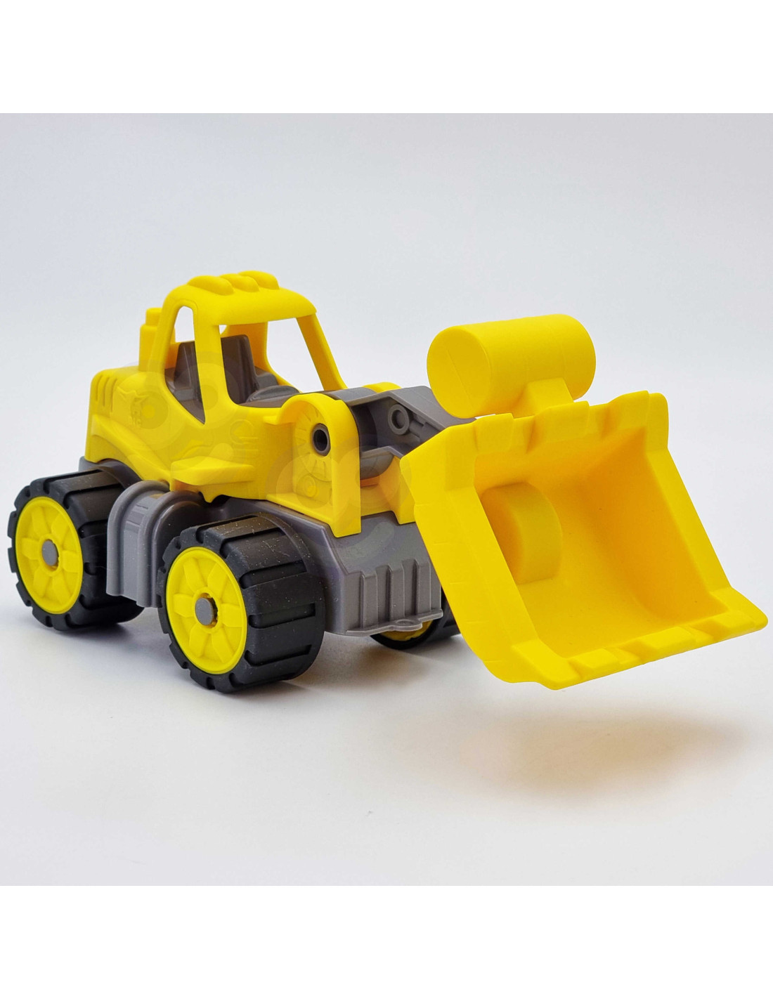 The BIG-POWER-WORKER charger's design is tailored to the physique of young children, allowing them to easily push, tip, or transport the toy. A special feature is the durable Soft Wheels, standard on all BIG-POWER-WORKER models, which, importantly, leave no marks on the floor.