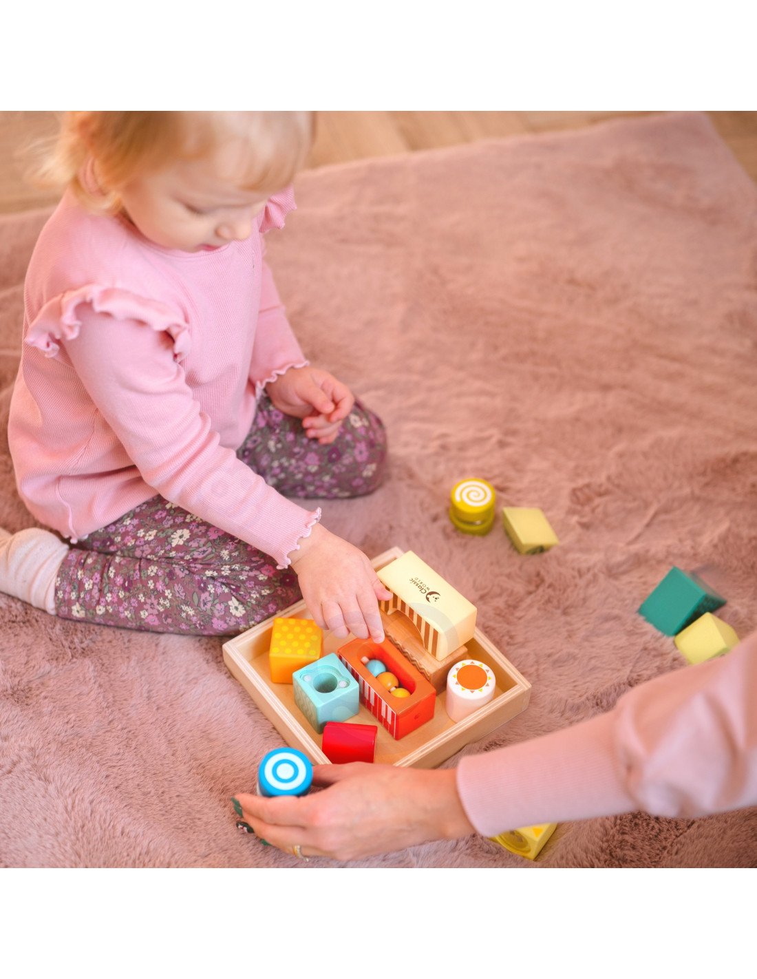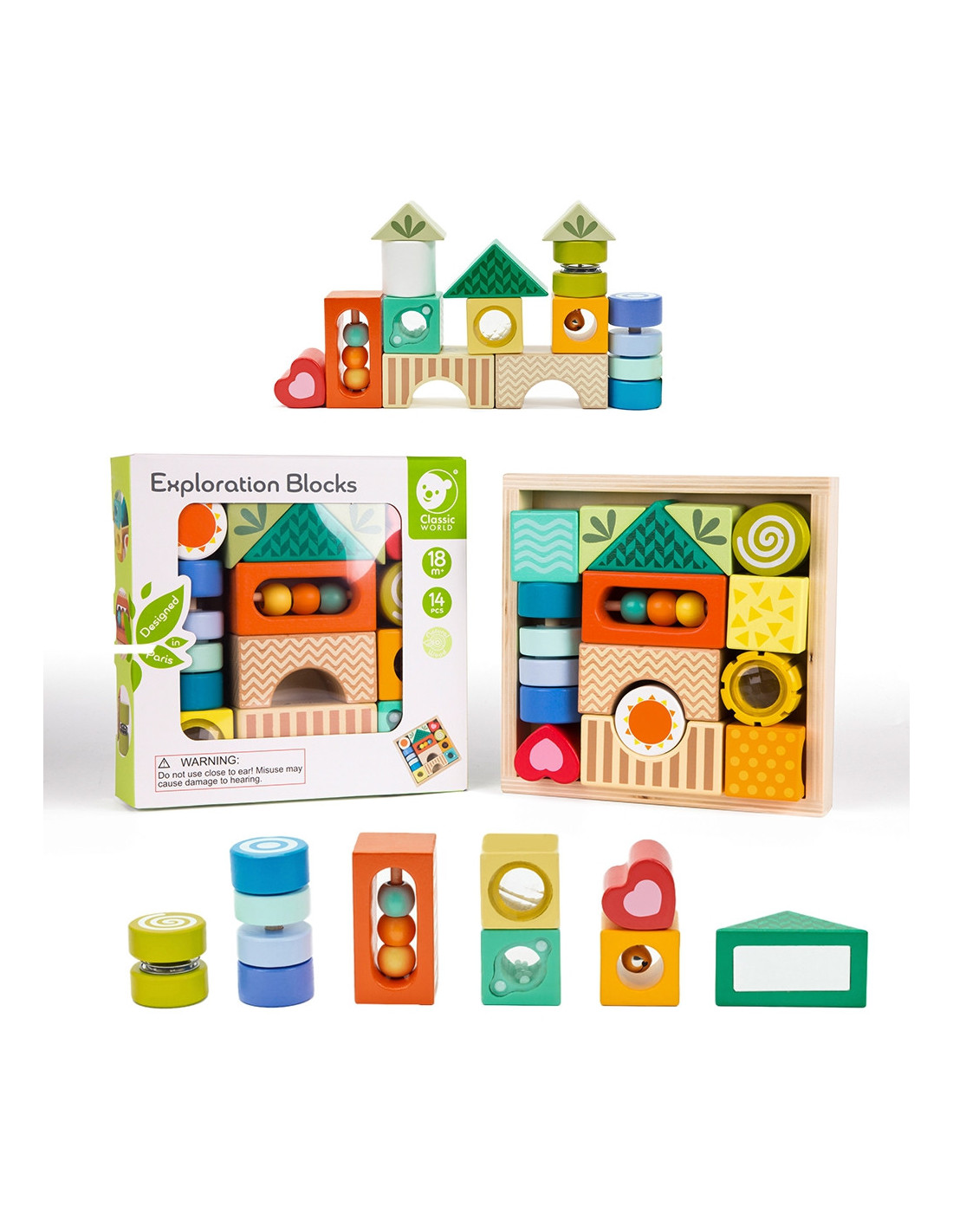 CLASSIC WORLD Drewniane Klocki Sensoryczne 7 Funkcji Układanka Multifunkcyjna Kształty Dźwięk MONTESSORI 14 el.