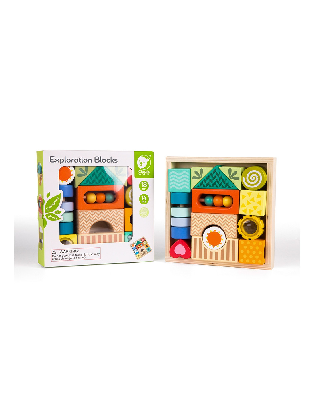 Klocki to klasyczne zabawki skutecznie rozwijające intelekt dziecka. Zestaw klocków sensorycznych od marki CLASSIC WORLD wspiera zabawę konstrukcyjną, dążenie do celu, kreatywność, rozwiązywanie problemów i podstawy STEM. Klocki wspierają dodatkowo zabawę ekspolaracyjną. Dziecko, które dostaje takie różnorodne klocki, studiuje je, analizuje ze wszystkich stron. Taka zabawa wspiera świadomość przestrzenną, naukę kolorów, kształtów, rozmiarów i funkcjonalności. Dla łatwego przechowania, klocki zostały umieszczone w drewnianej ramce by bezpiecznie czekały na następną lekcję przez zabawę.