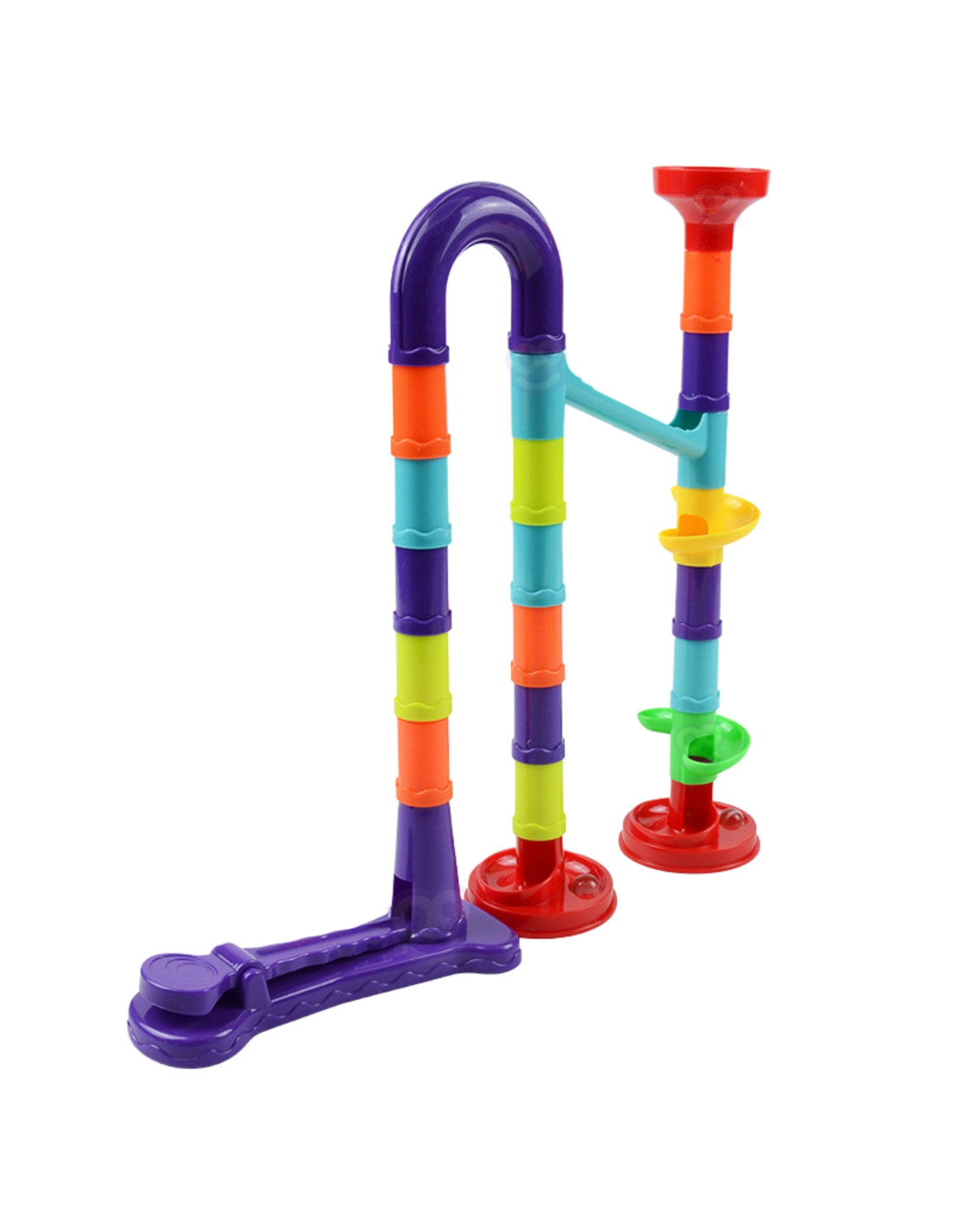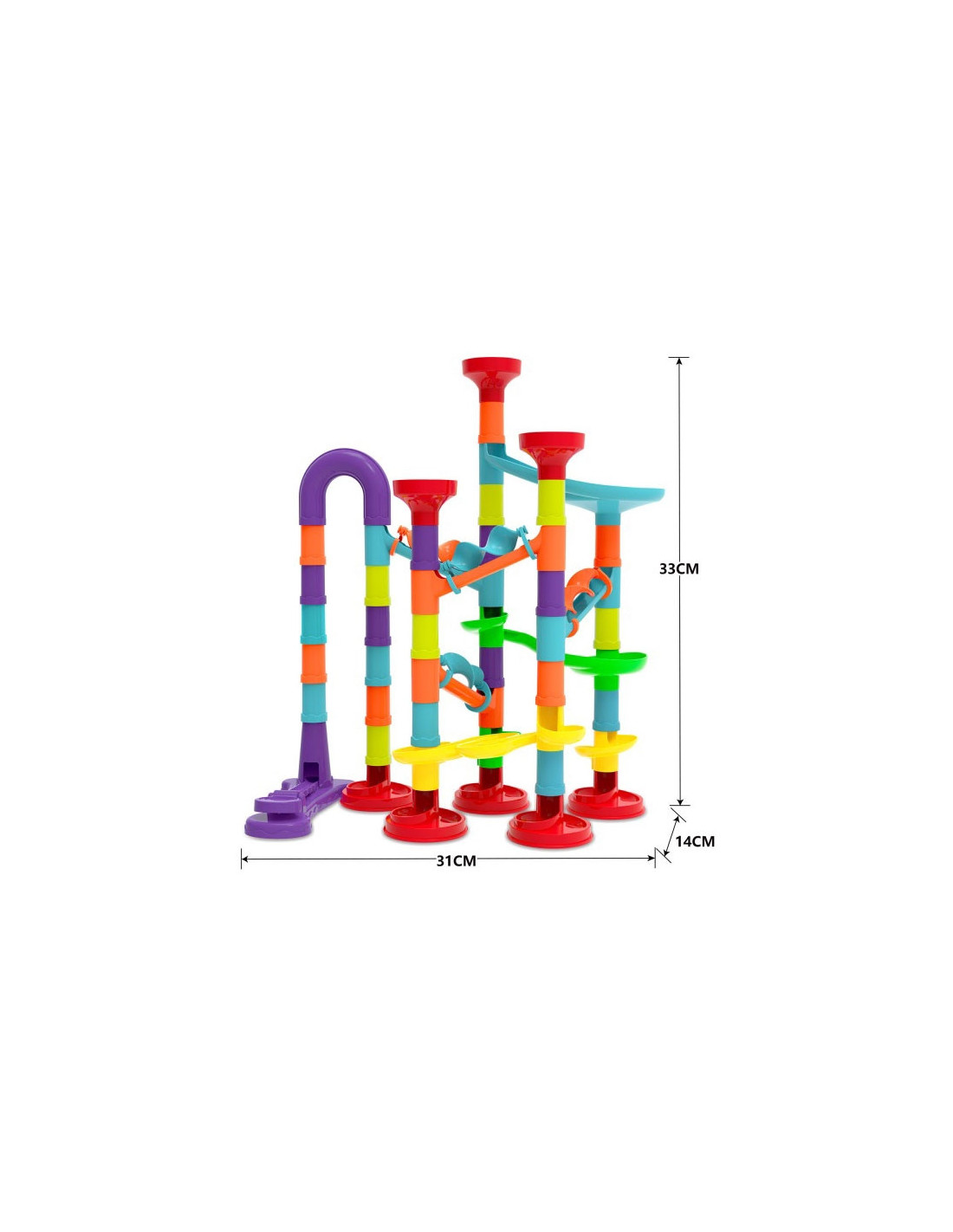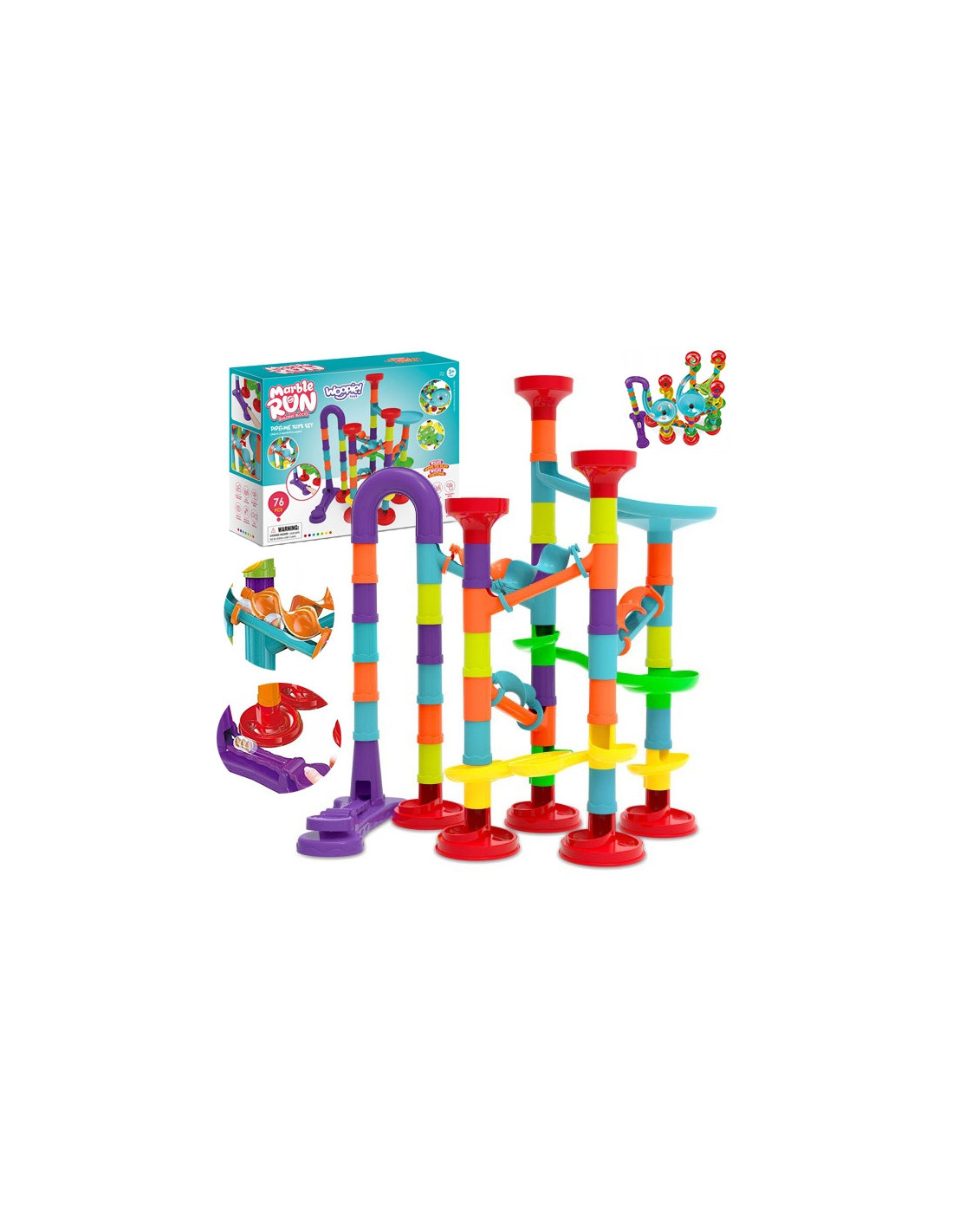 The WOOPIE Ball Track is a spiral track that provides endless fun. This colorful set consists of many different colored pieces that toddlers can easily stack and combine to create imaginative tracks. Additionally, the back of the package includes instructions showing an example track using all the pieces. Release the balls and watch them roll one after another. The set includes 76 pieces , including a launcher and 20 balls for the track . The size is perfect for small hands and helps develop eye-hand coordination .