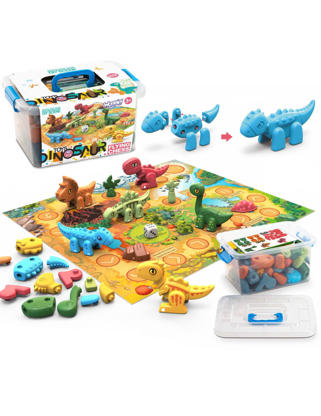 WOOPIE 2-in-1 Construction Set Dinosaurs Board Game + 46-piece Dice