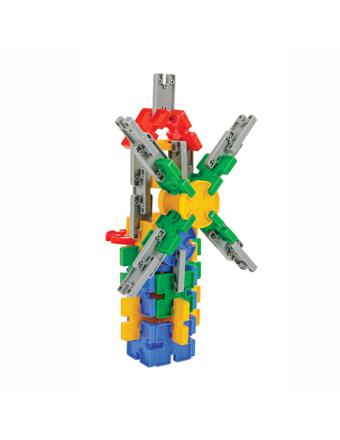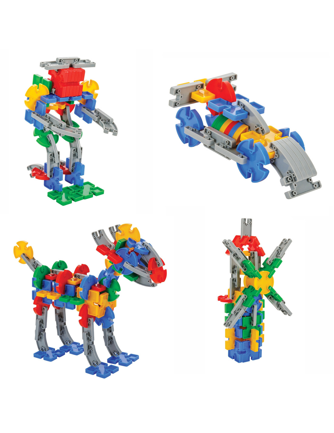 This set of construction blocks in a convenient carry-on box from Woopie is everything kids need to develop their mental skills while having fun . The set contains 320 blocks made of eco-friendly material . The blocks are multicolored and gray and come in various shapes: rectangular , square , and circular , with the option of forming a circle. The pieces allow you to create a variety of three-dimensional structures (including a helicopter, a motorcycle, a horse, a ball, a robot, a ship, a formula, and a windmill ). Stacking the blocks will be a lot of fun and is a great support for your little one's intelligence development . The toy develops your child's motor skills through hand movements .