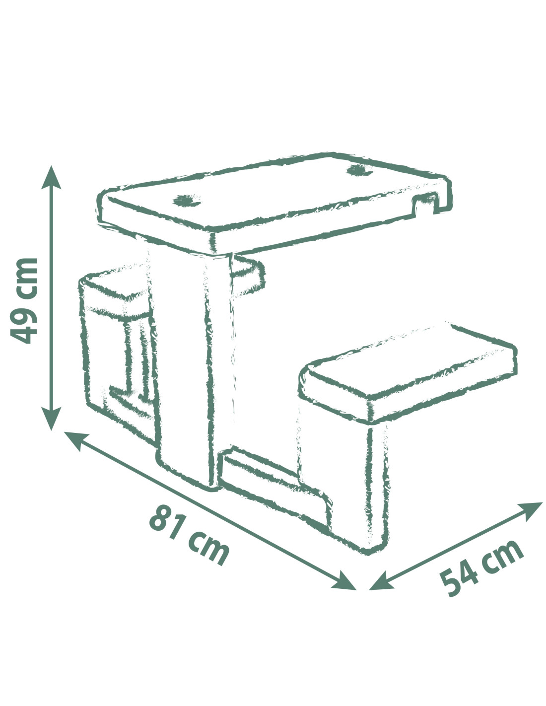 The Smoby Picnic Table is a great way to enhance your garden shed and create additional play space. Children can enjoy a picnic, enjoy a snack with friends, and even imitate adults while preparing meals, which develops their imagination and social skills. Made of durable plastic, the product is easy to clean. Thanks to the anti-UV coating, the table and benches retain their vibrant colors for a long time, even when exposed to sunlight. The subdued, natural colors perfectly complement Smoby garden sheds.
