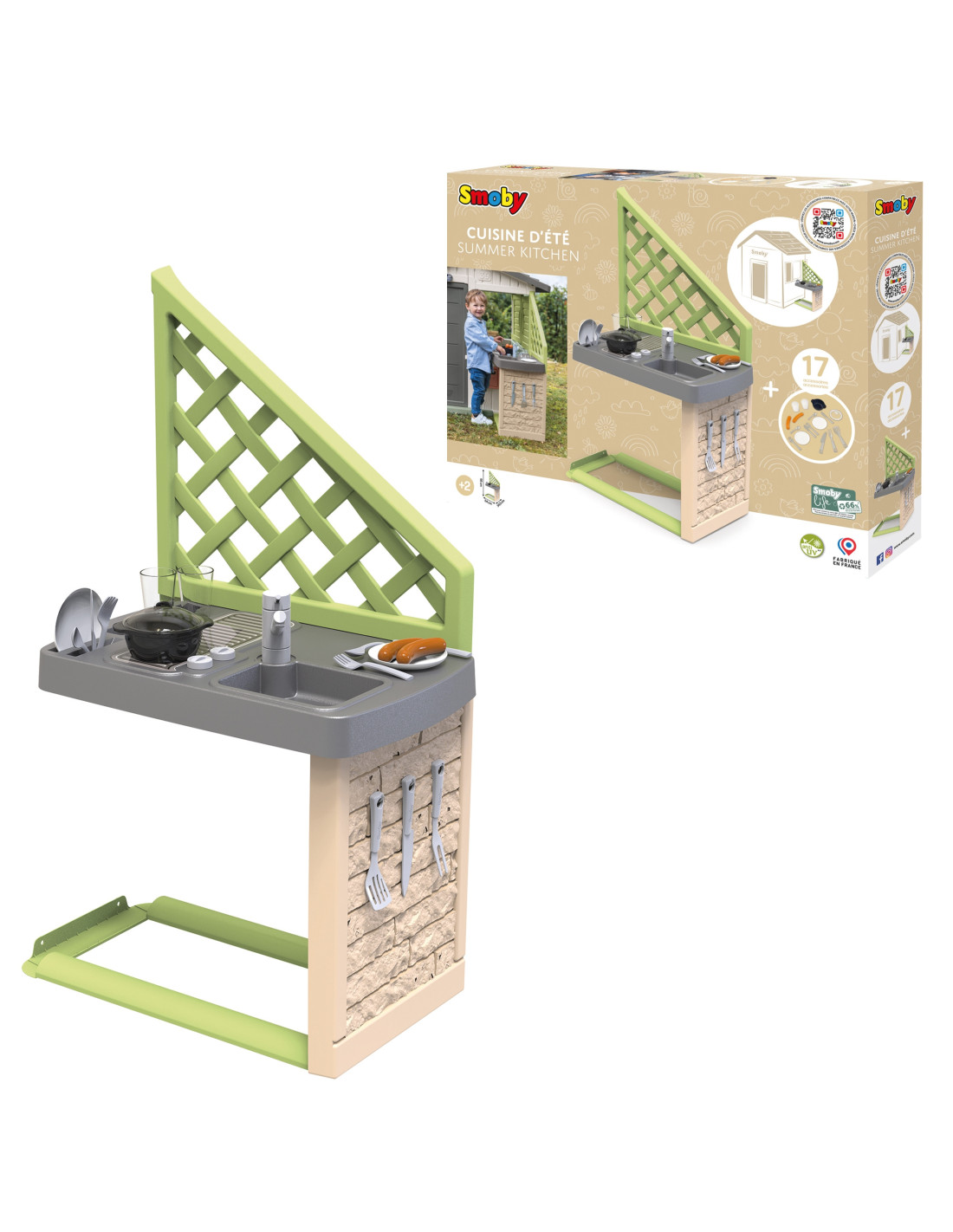 A summer kitchen with a grill and sink is a great way to enhance outdoor play. This charming set pairs perfectly with Smoby garden houses, giving kids the opportunity to get creative with cooking, grilling, and keeping organized in their own miniature kitchen.