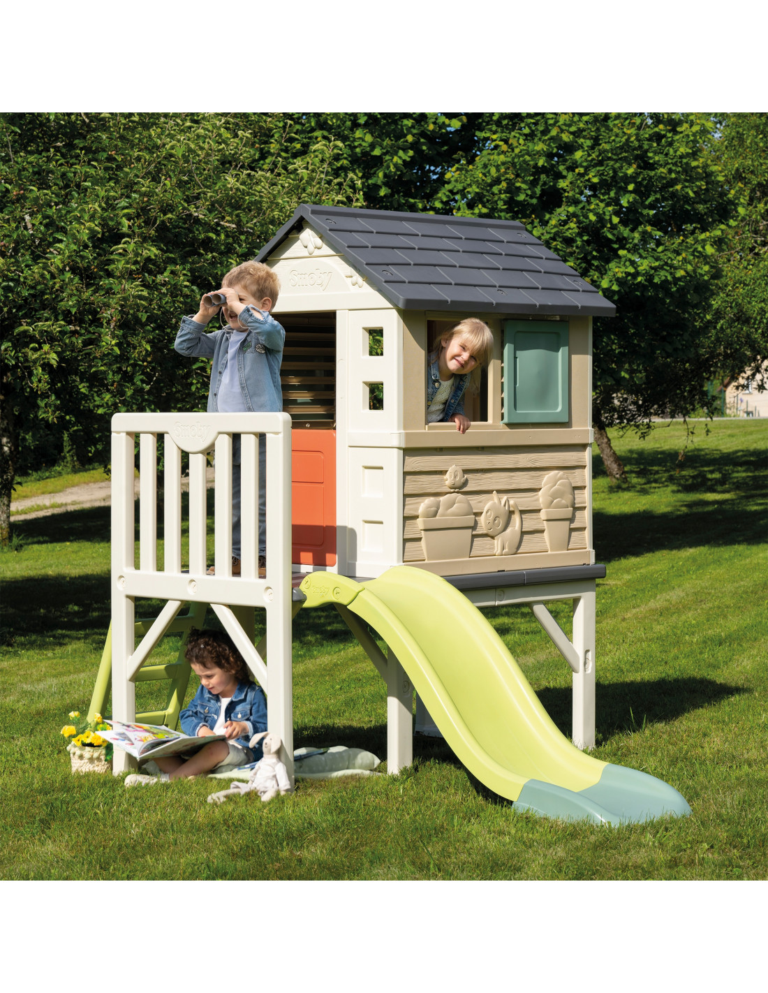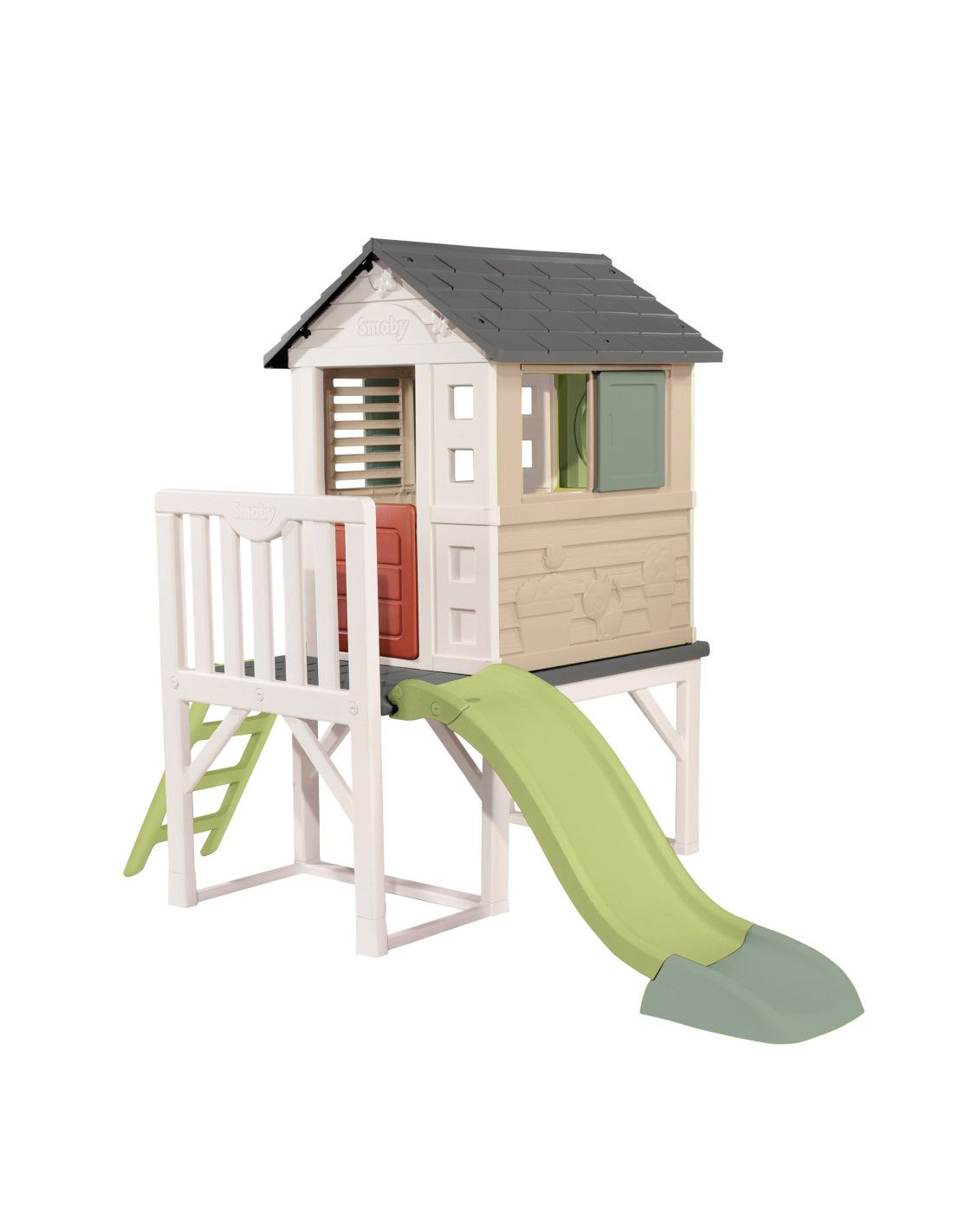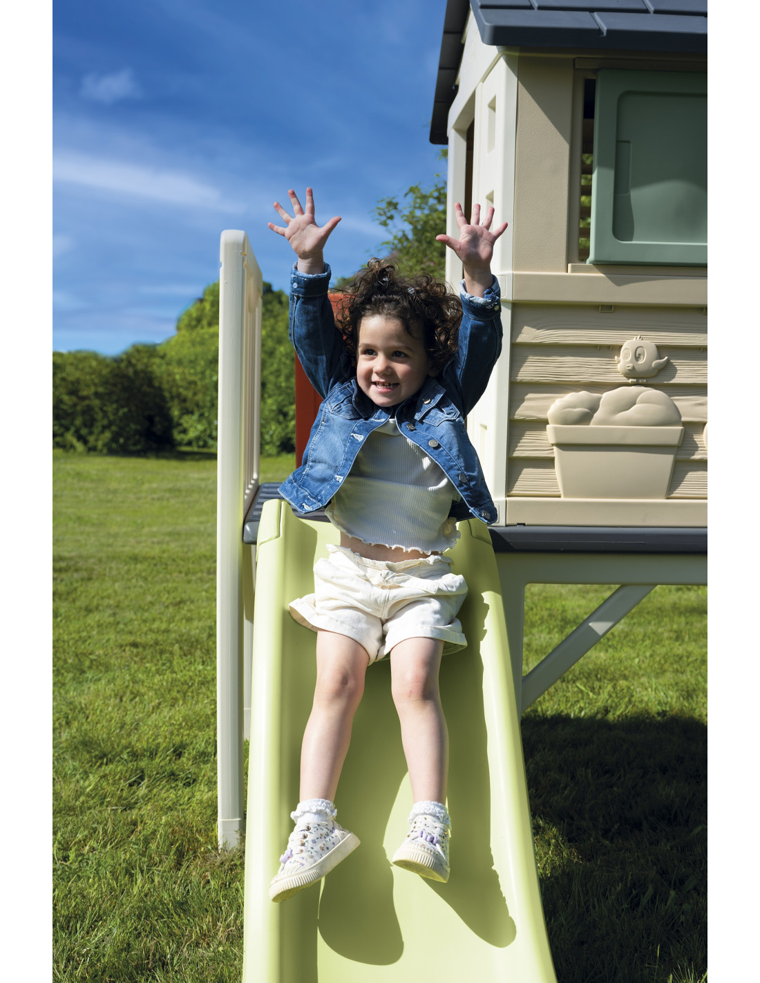 The Smoby Life Garden Playhouse on Stilts with a Slide is a dream play space for children aged 2 and up. Thanks to its elevated structure, slide, and stylish shutters, children can actively spend time, develop their imagination, and enjoy outdoor play. It's a perfect choice for playing with siblings and friends. This playhouse offers a unique play space that combines eco-friendly production, aesthetic appeal, and plenty of fun for children!