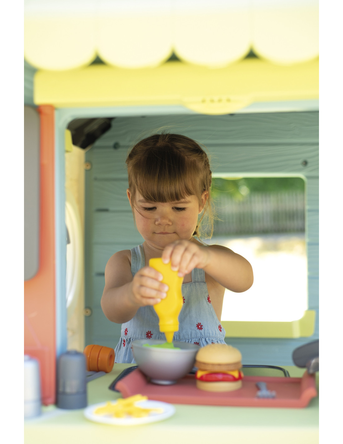The Smoby Chef's Cottage is a unique toy that combines the functions of a classic garden cottage with a fully-fledged restaurant kitchen. Perfect for young cooking enthusiasts who want to develop their culinary skills in the garden by creating their own outdoor restaurant. Perfect for solo play or with friends, it encourages creativity and collaboration.