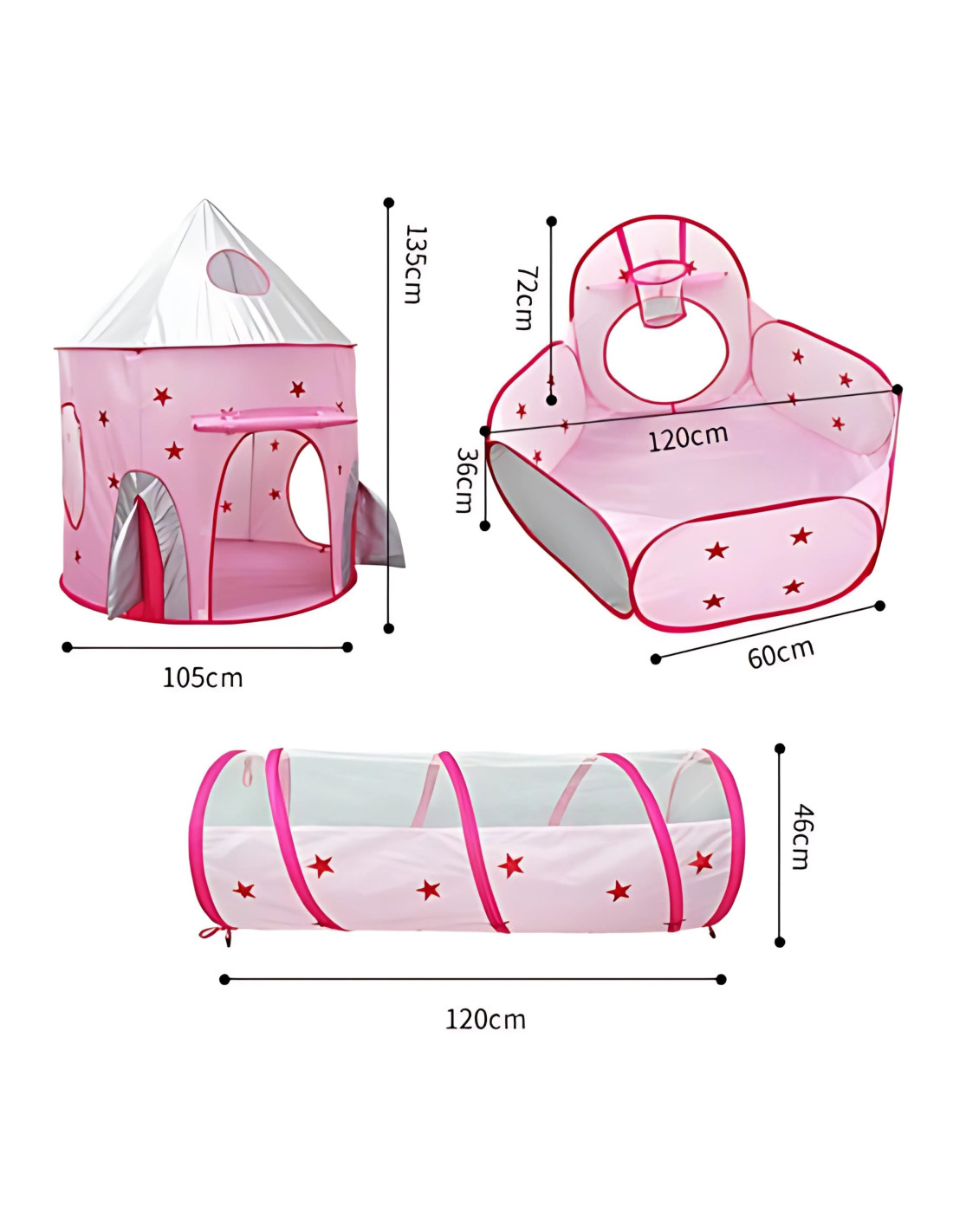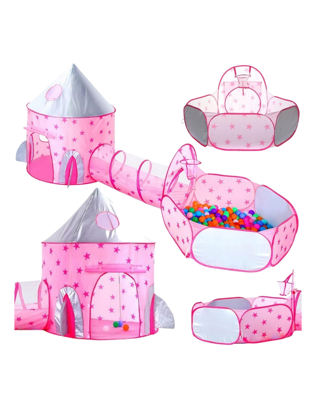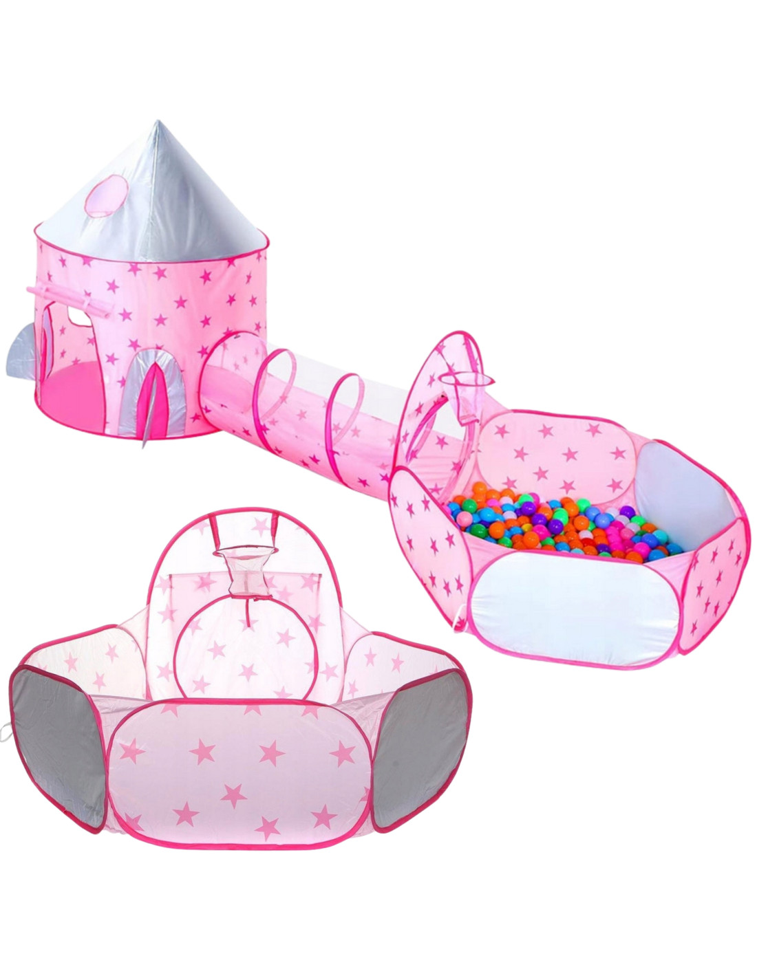 Our pink 3-in-1 playset from Woopie is the perfect place for unforgettable adventures, secret hideouts, and hours of creative play! Designed for little dreamers who love playing princess and discovering new worlds.