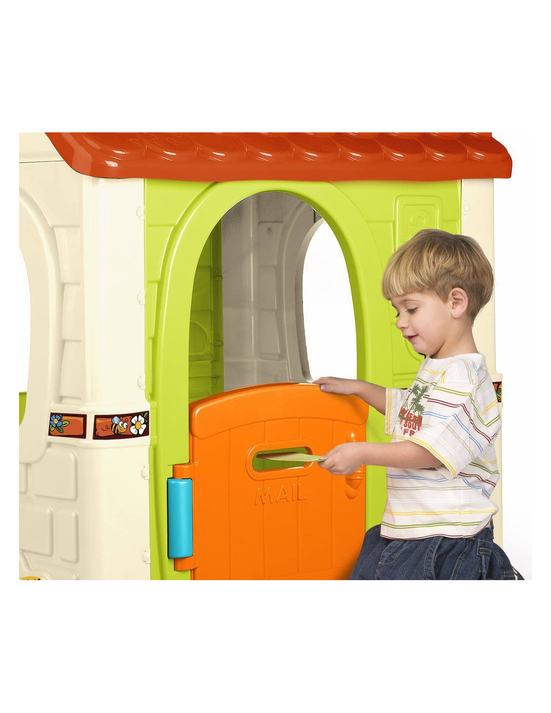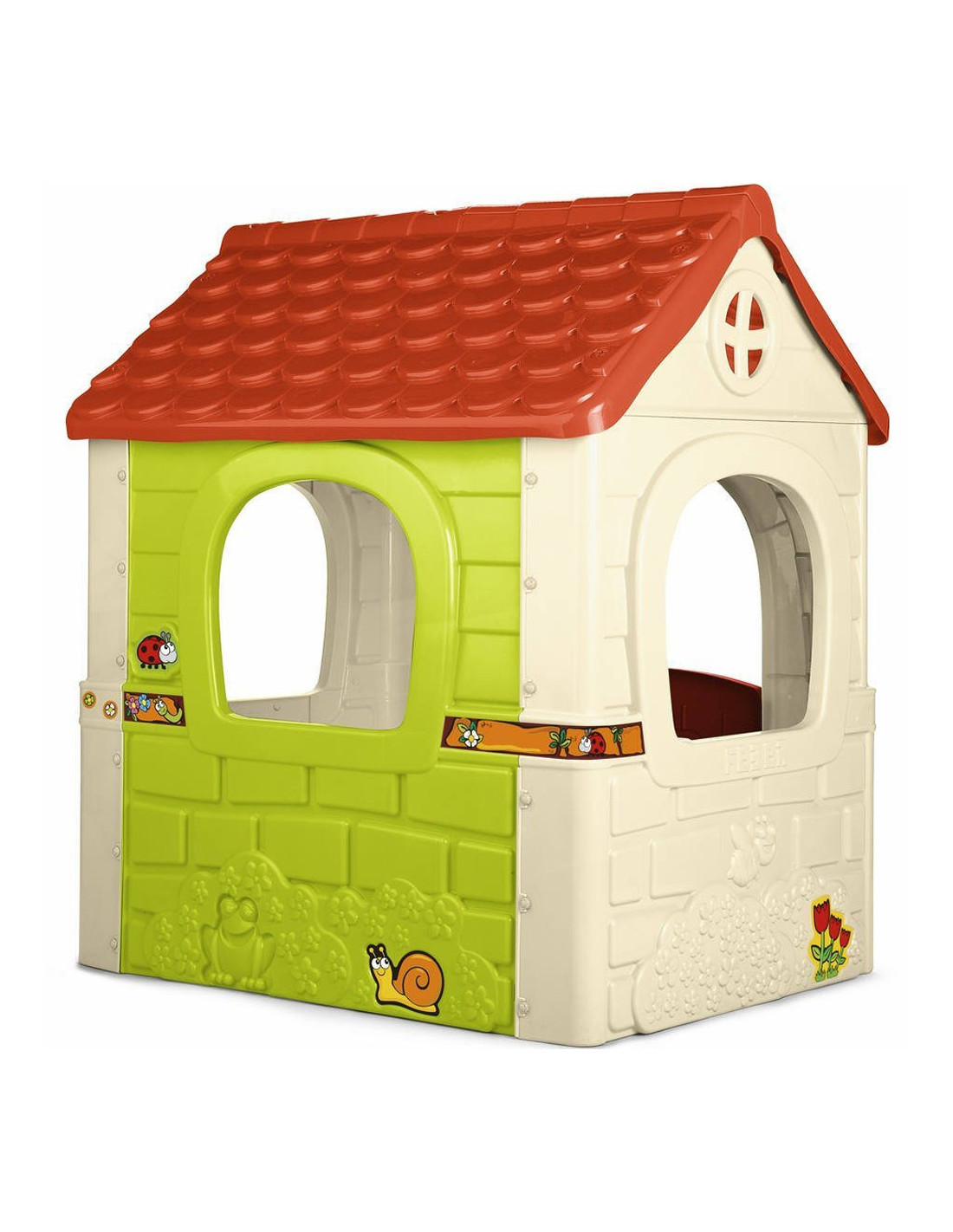 A Fantasy garden house with a spacious interior for creative play. Manufactured using the latest technology and the highest safety standards, the entrance door features a mailbox opening. This functional and realistic house features a spring motif. The entire structure is made of colorful , sun- and temperature-resistant plastic. This FEBER house is incredibly easy to assemble. Child joy is guaranteed!