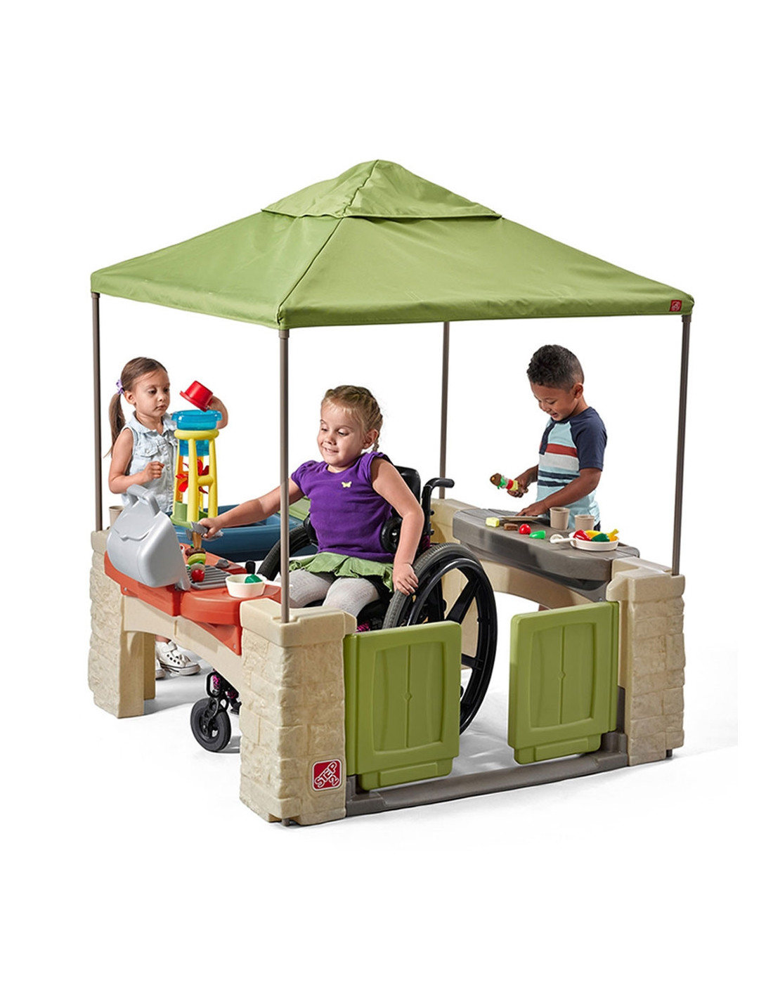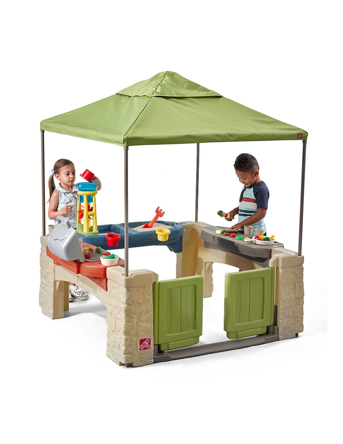 Patio z Baldachimem i grillem amerykańskiego producenta zabawek Step2 to świetny dodatek do przydomowego placu zabaw. Dzieci mogą organizować własne przyjęcia dla swoich znajomych. Realistyczne i atrakcyjne wzornictwo idealnie wkomponuje się do każdego ogrodu. Mali kucharze będą mogli godzinami bawić się w kuchni, udając że przygotowują i grillując swoje ulubione potrawy, zupełnie jak mama i tata.