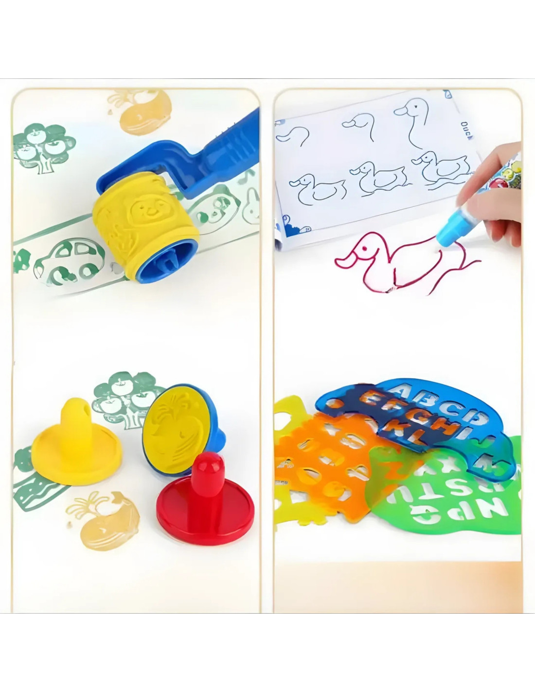 The Magical Water Canvas from Woopie is a creative and educational toy that will delight every child. Thanks to special water markers, painting is completely safe – just water is enough to create amazing drawings and patterns. The colorful world map with marked animals also turns play into an opportunity to learn geography and explore nature. The set includes numerous accessories: stamps, stencils, a roller, markers, and a sponge – to diversify creativity. It's the perfect gift idea that develops imagination and guarantees hours of mess-free fun.