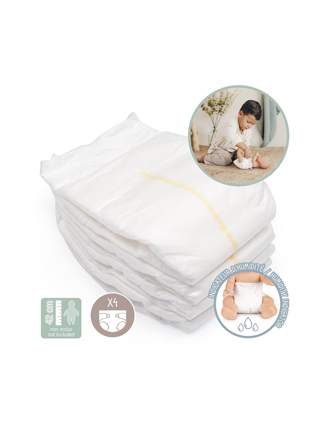 The set includes four doll diapers from the Smoby brand. These diapers will make your little one feel like a real new mom . Doll diapers are a must-have in your little one's play kit, ensuring hours of playtime for your little one.