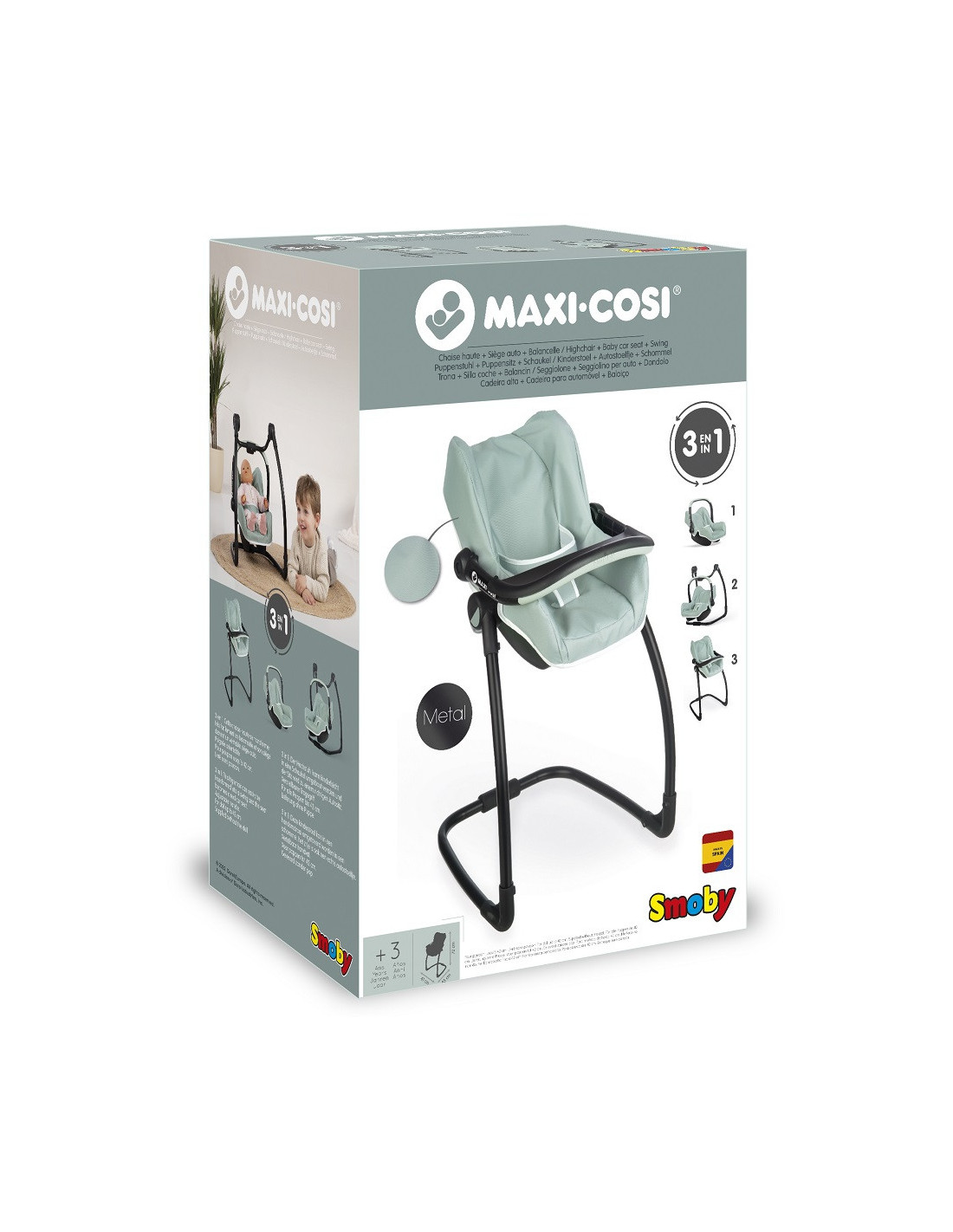 SMOBY Maxi Cosi Quinny 3-in-1 Highchair for Dolls, Carrier, Rocker