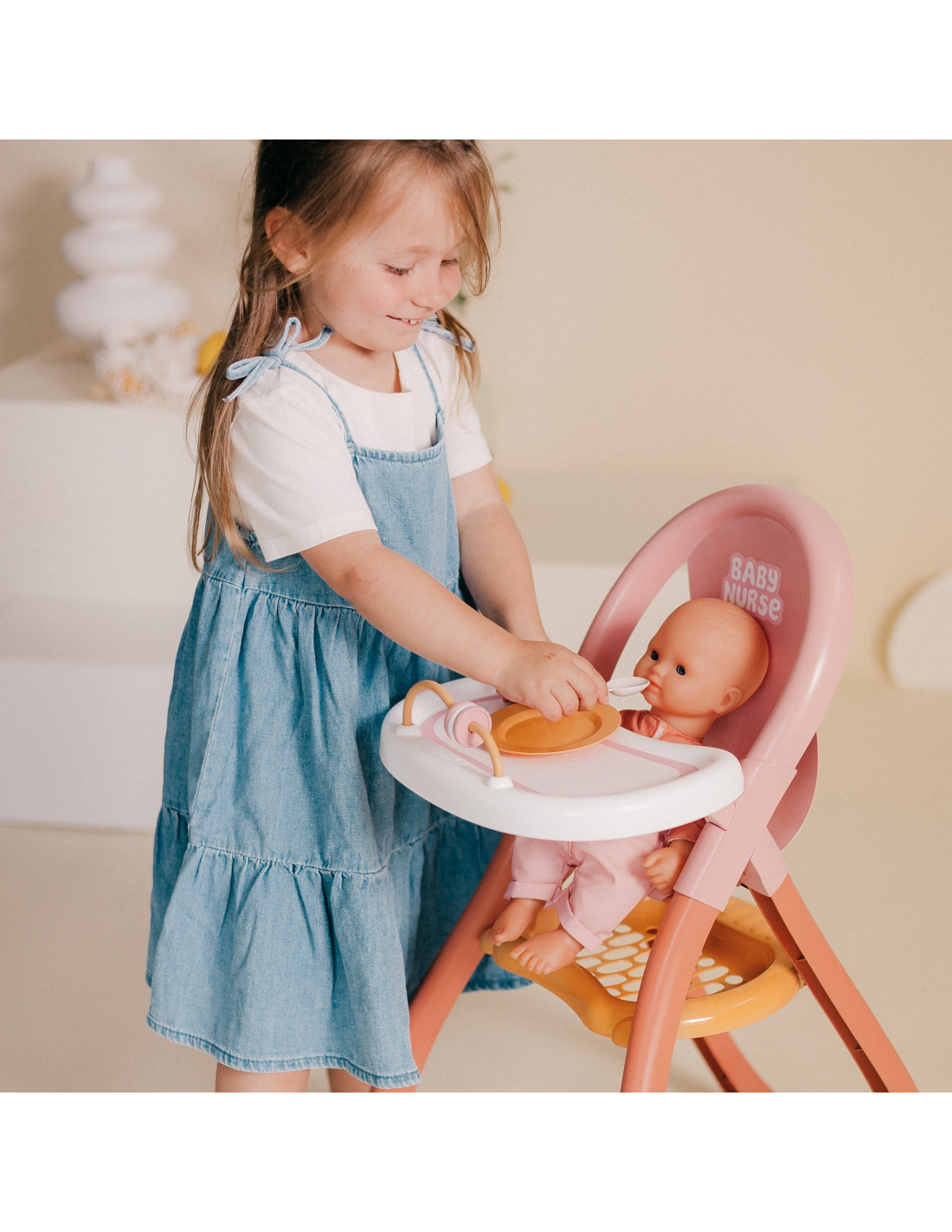 Every little girl dreams of caring for her doll like a real mom! The Baby Nurse Highchair allows for everyday caregiving fun, teaching empathy and responsibility. The highchair features a modern design and beautiful, girly colors that will delight every "little mom." The toy features a practical shelf and a toy attached to the table, and the set also includes a plate and spoon. The highchair is ideal for dolls up to 42 cm, and play develops creativity, imagination, and early social skills.