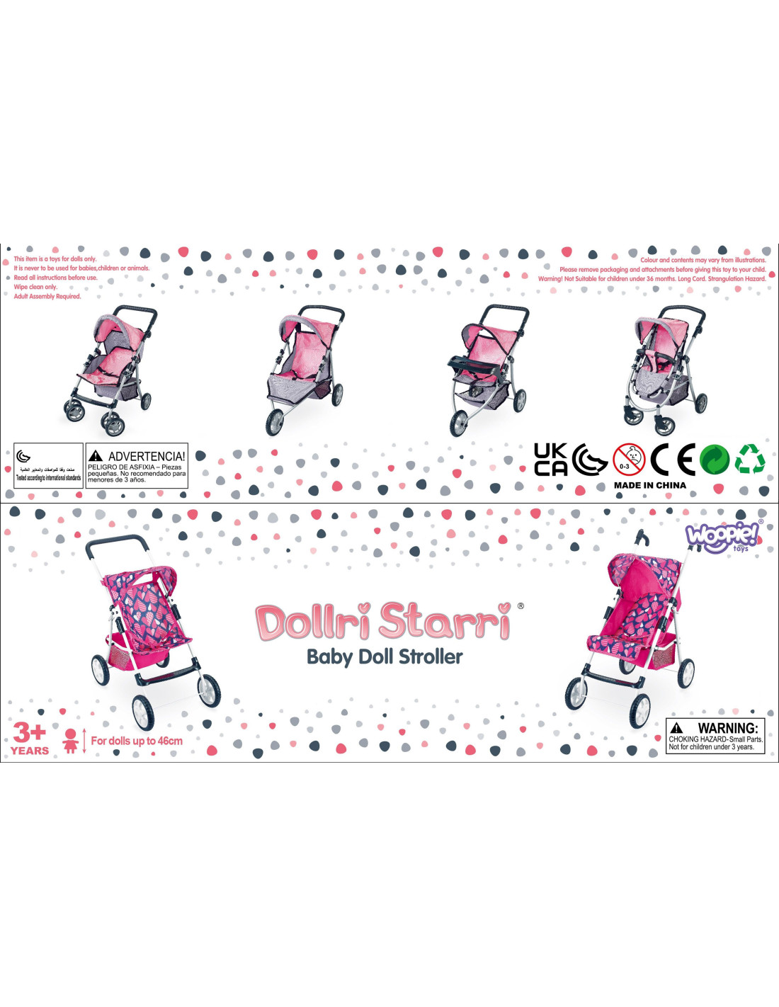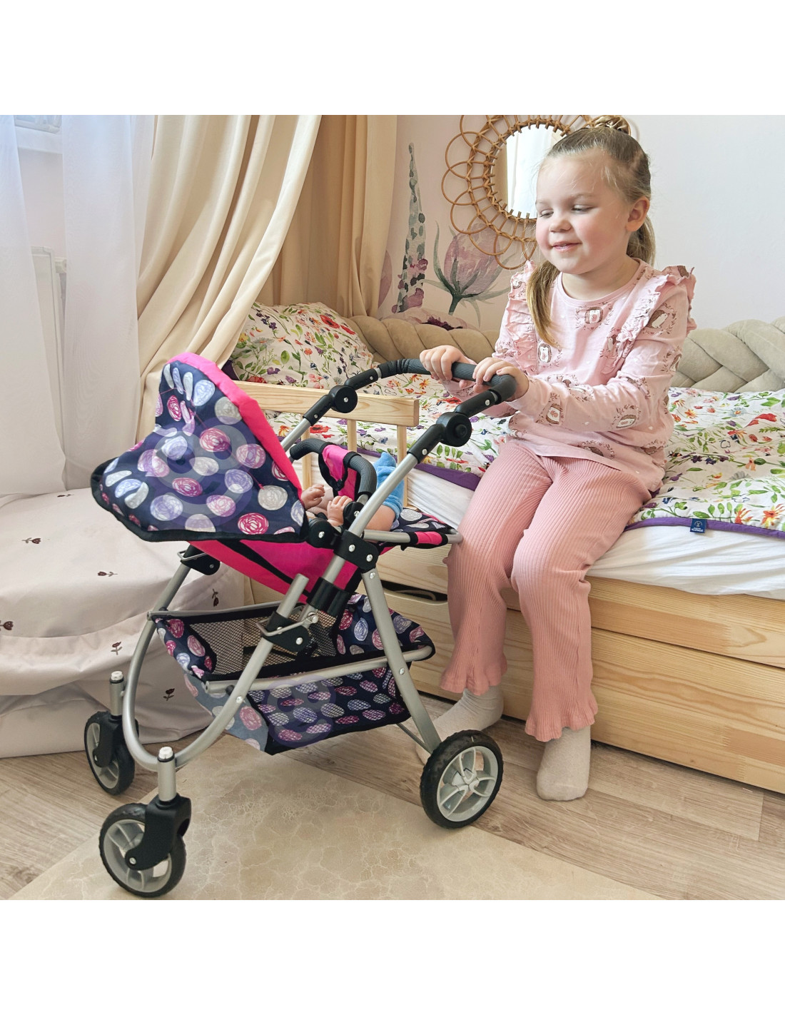 This stylish and functional doll stroller from WOOPIE is the perfect gift for any little doll lover. Its adjustable seat allows you to easily adapt it to various play needs, allowing you to transport your favorite dolls. Swivel front wheels ensure smooth maneuverability, and the sturdy construction ensures stability during walks. The stroller is equipped with a soft, comfortable handle and a spacious accessory basket that holds all the essentials for playtime. The foldable canopy protects the dolls from the sun, and the compact design makes it easy to store when playtime is over.