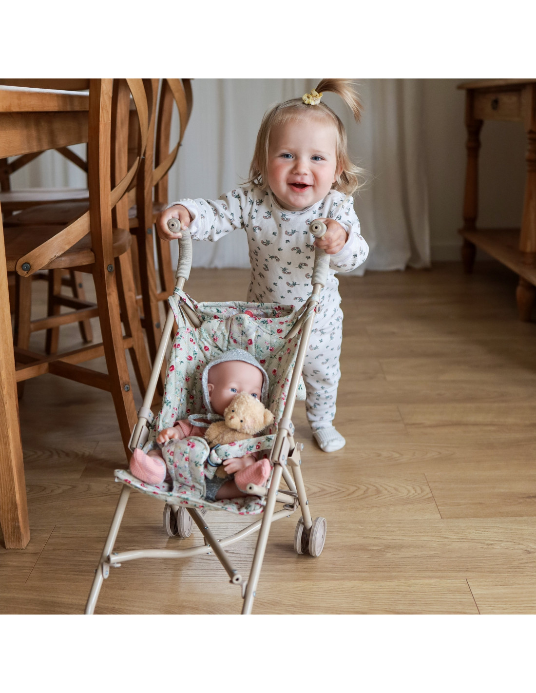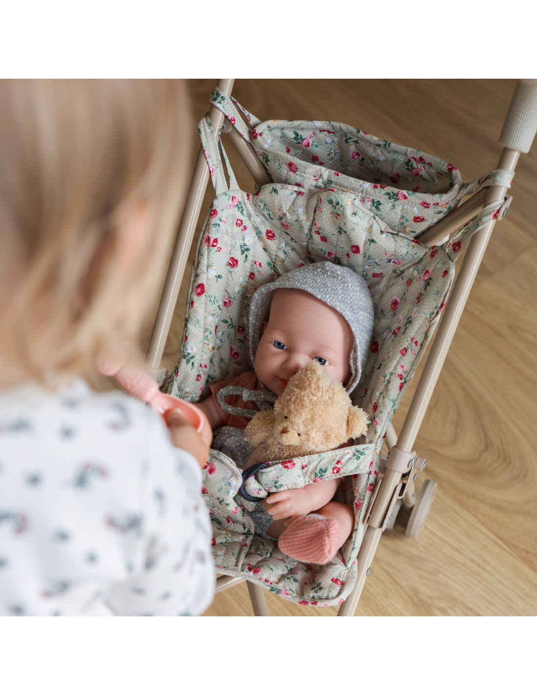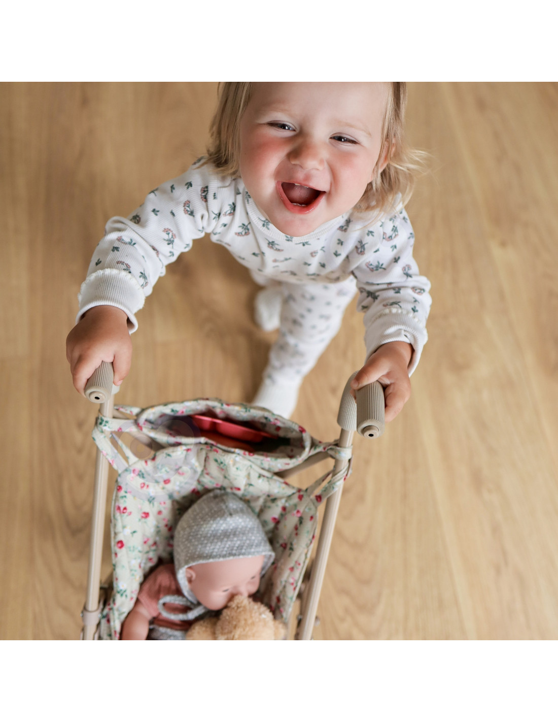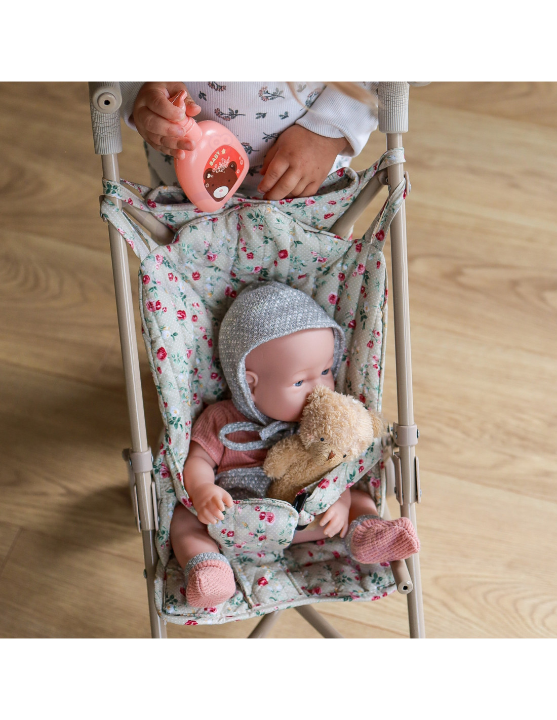 This floral doll stroller from Woopie is the perfect toy for any girl or boy who loves playing house and caring for their favorite dolls or stuffed animals. Its lightweight, foldable design makes it easy to carry and is perfect for both indoors and outdoors. Comfortable handles designed for children's hands and double wheels ensure a comfortable ride. Stylish cream-colored upholstery with a charming floral pattern adds a unique touch. It's a wonderful gift idea that develops a child's imagination, empathy, and manual dexterity .