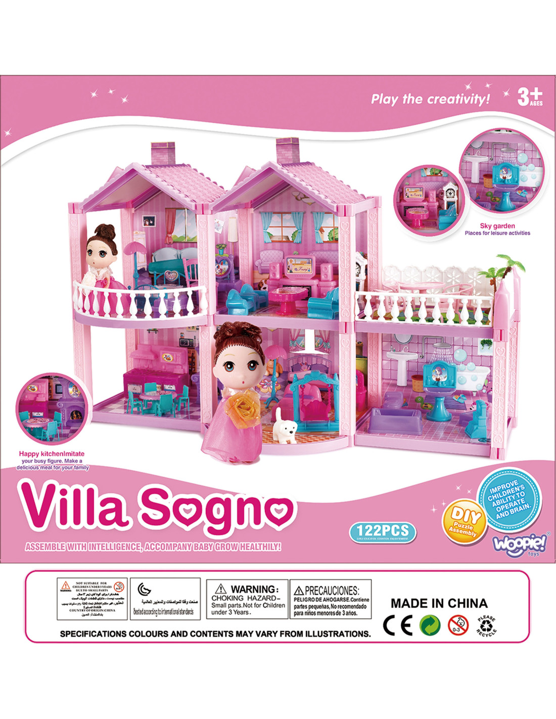 This unique, plastic dollhouse from WOOPIE is the perfect way to provide hours of fun for every girl and her friends. It's perfect for the ponies and dog included in the set, or for dolls. Everyone in this mansion will feel like they're in a palace. The product is crafted with not only child safety in mind but also meticulous attention to detail. It comes with a comprehensive set of furnishings. The furniture shown in the photo is included. Every detail has been meticulously crafted.