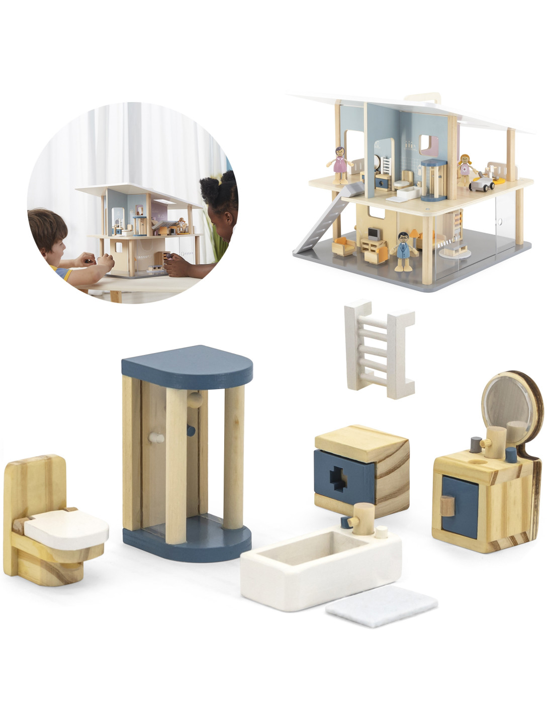 Seria zestawu mebelków dla lalek od renomowanej firmy Viga to idealny prezent dla twojego dziecka. Seria zawiera 5 różnych pomieszczeń w innych kolorystykach. Stwórz swój własny domek dla lalek i układaj meble oraz pomieszczenia wedle własnego uznania. Produkt wykonany jest z wysokiej jakości materiału oraz z dużą dbałością o szczegóły. Zabawka pomalowana jest nietoksycznymi farbami w łagodnej kolorystyce.