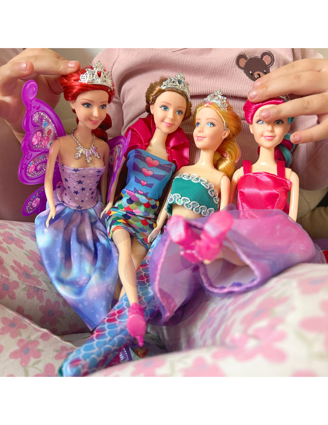 Are you ready to add a touch of magic to your child's play ? Thanks to the WOOPIE brand, it's possible! This set of four charming princess dolls will provide your child with hours of magical and unforgettable play. The dolls are dressed in beautiful , eye-catching outfits, and each one comes with their own unique accessories . Their soft, shiny hair is designed for brushing and styling. Your child can let their imagination run wild and create many play scenarios! The convenient packaging accommodates four dolls, with each doll displayed on a separate side of the box – so after playtime, the product will serve as a charming decoration in your child's room. Magical princesses are not just toys – they are magical companions who allow children to create their own narratives and develop empathy and social skills .