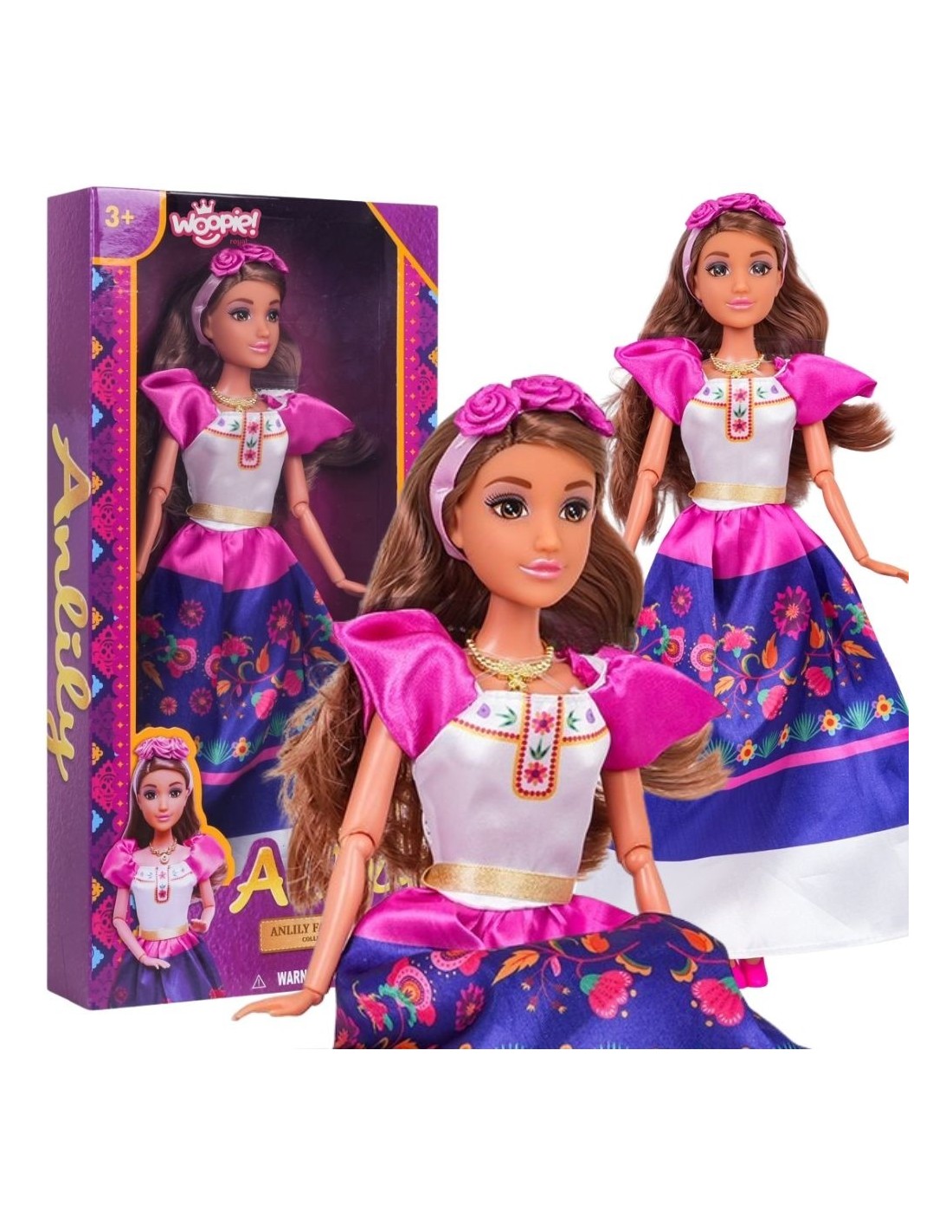 Meet the charming Lily doll in traditional Mexican attire, who will transport your child to a world of creative play and imagination ! She has beautiful, long brown hair adorned with a headband decorated with pink roses. Her outfit captivates with its vibrant colors and rich patterns , reminiscent of folk style. Perfect for any little princess who loves role-playing and dressing up! The doll has movable arms and legs , which enhances playtime. High-quality craftsmanship and attention to detail make her a wonderful addition to a collection and a perfect gift !