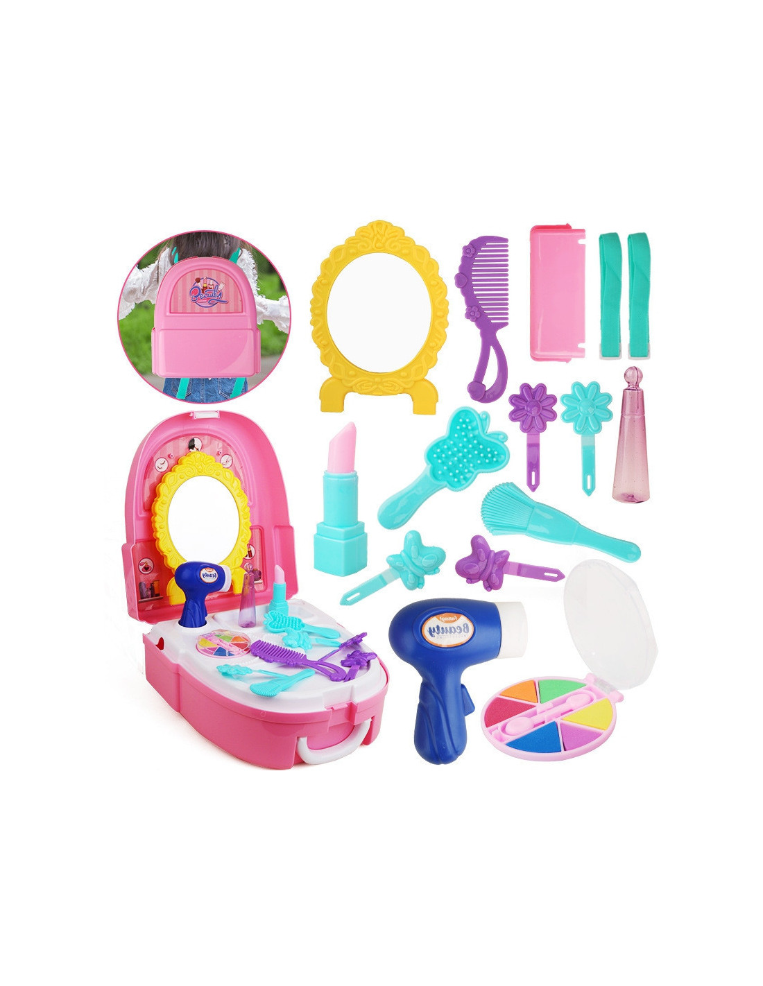 The Little Princess Backpack Set from WOOPIE will let your child feel like a model wherever and whenever they want. Children dream of becoming princesses and love experimenting with style and fashion. The set includes 19 pieces : everything you need for a wonderful vanity . The toy doubles as a backpack thanks to its shoulder straps, making it easy to take the set anywhere . Role-playing will help your child develop their imagination and creativity .