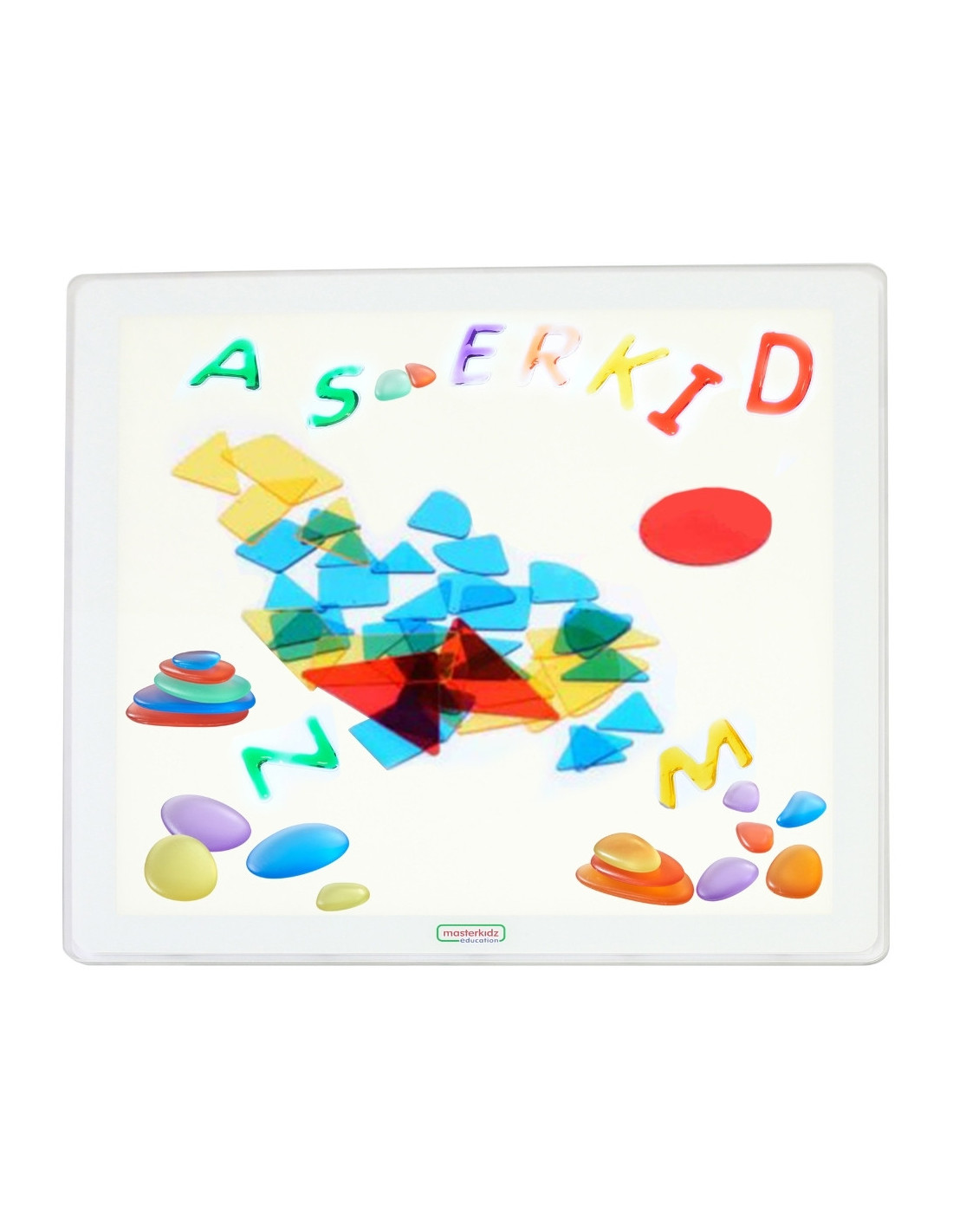 The square light panel is a versatile educational tool that's perfect for any classroom. Its lightweight design and large surface area make it easy to transport and provide adequate space for observation and play for children of all ages. The panel emits colorful light, freely configurable thanks to the included remote control. Users can set the panel to one of 11 pre-programmed colors or manually change the emitted color based on the primary colors of light: red, green, and blue. The device also allows for smooth color transitions and the ability to save selected colors for future use. The panel can be placed on either a table or the floor – its size allows for simultaneous work by one child or a group. The panel works perfectly with the included colorful accessories, which expand the play and learning possibilities, allowing for the creation of diverse patterns and light compositions.
