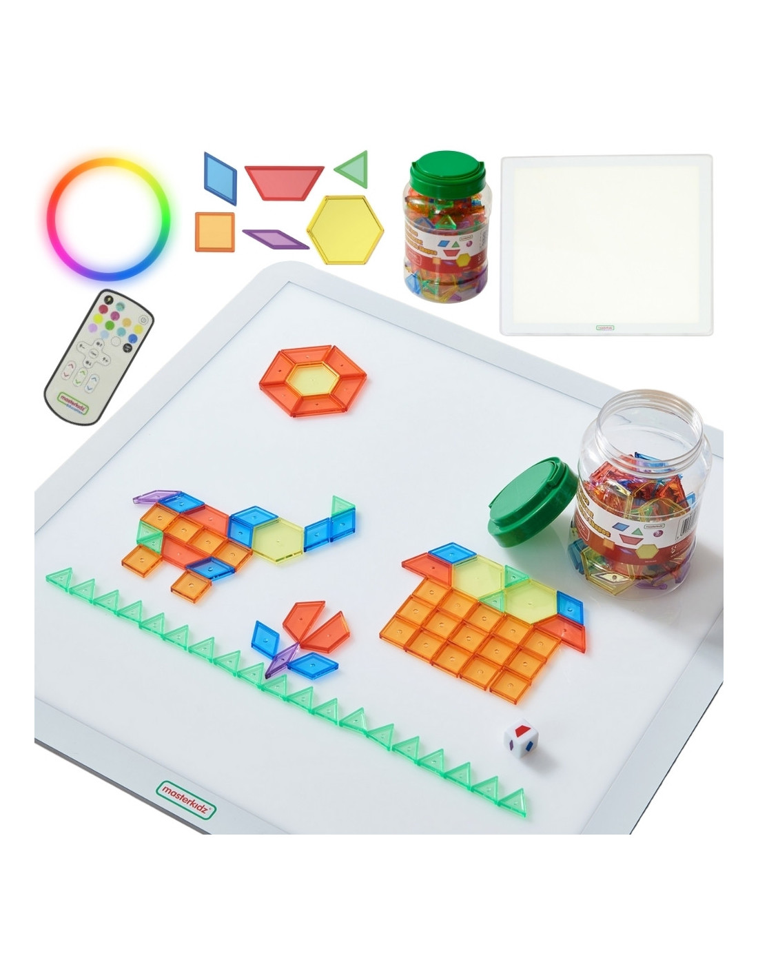 MASTERKIDZ Square LED Light Panel Colorful + Montessori Mosaic Blocks 140 pcs.