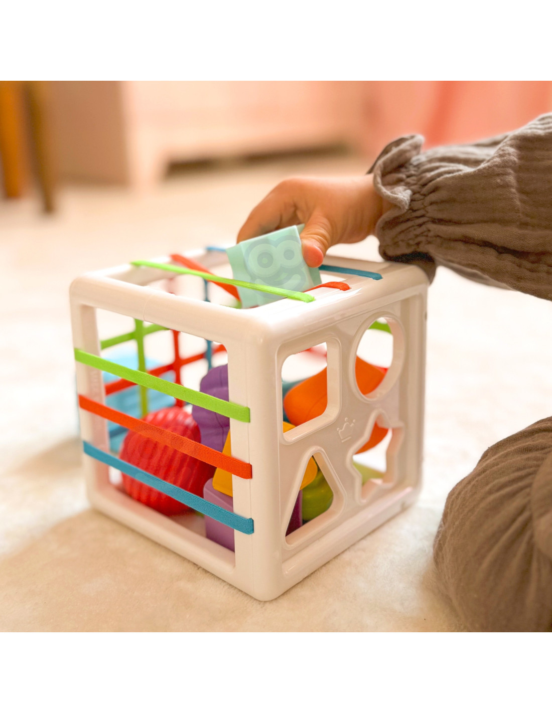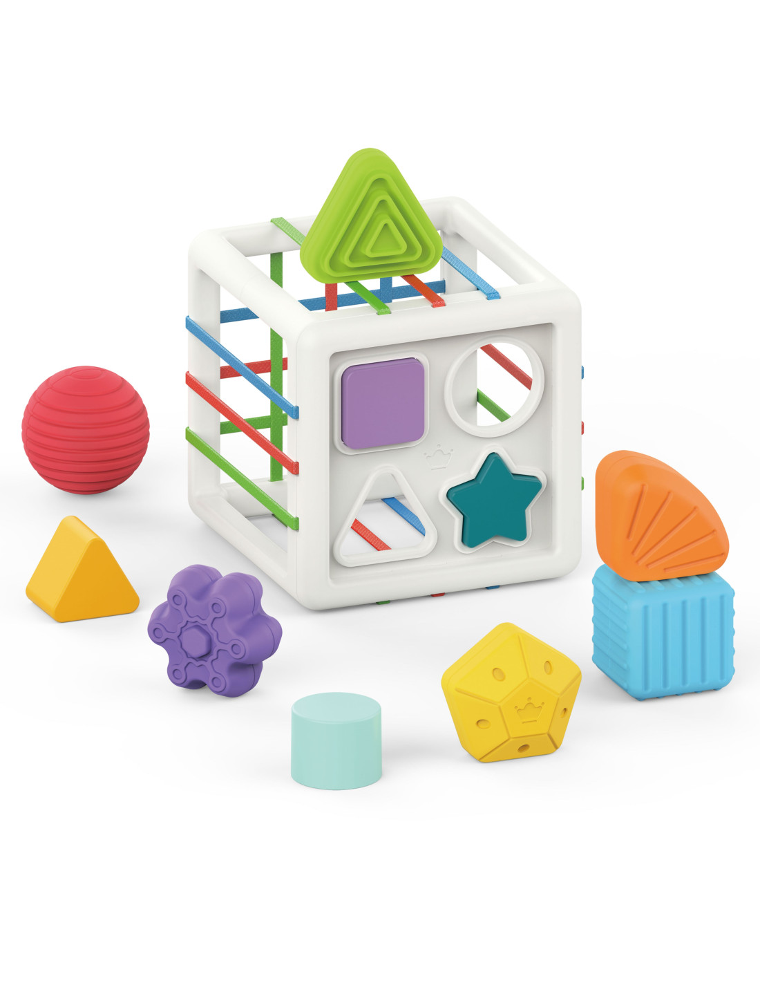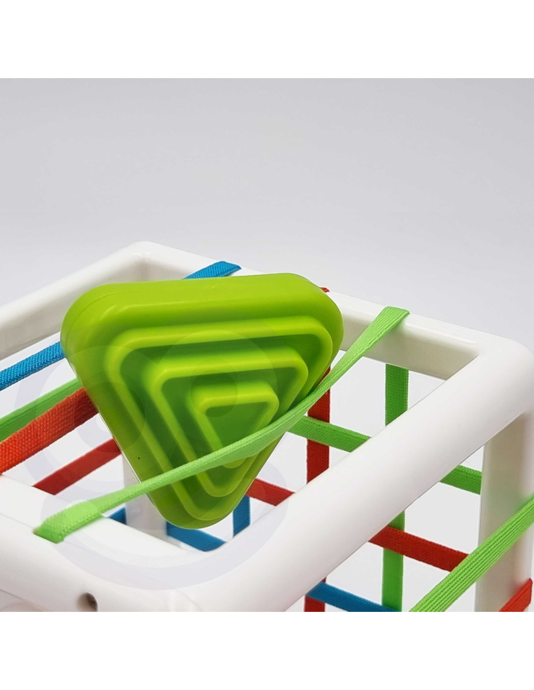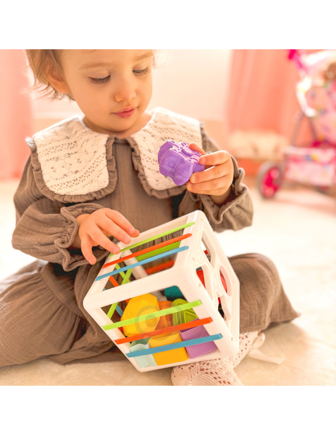 The Flexible Sensory Cube from WOOPIE will stimulate your child's development! Children play by inserting and removing elements from the educational cube. Additionally, one side is a classic sorter with matching specific geometric shapes . While playing, children develop their senses and improve their manual skills . Each block It stands out , sparking a child's curiosity enough to want to take it out and put it back in the sorter. This toy develops a child's sensory and cognitive skills , and encourages experimentation . Additionally, as the child grows older, the blocks can be used to learn colors and shapes . A must-have toy for a child in their early years!