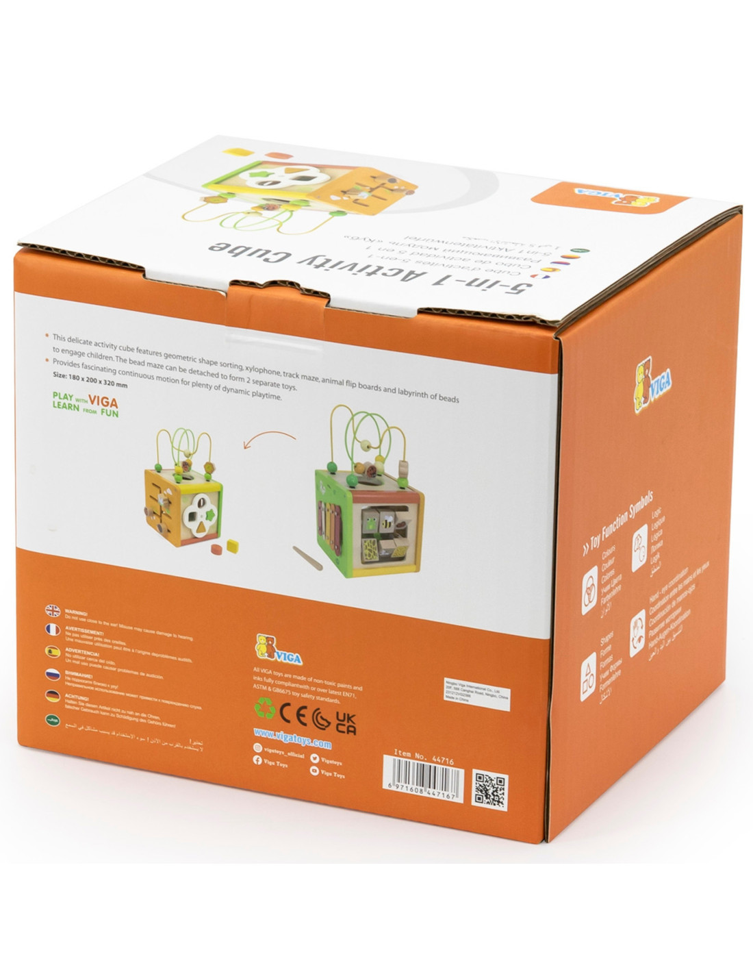 The 5-in-1 Wooden Educational Cube from Viga is a functional educational cube that will provide your little one with hours of fun and learning. Each side offers a different activity, allowing your child to choose the activity that interests them most at any given moment.