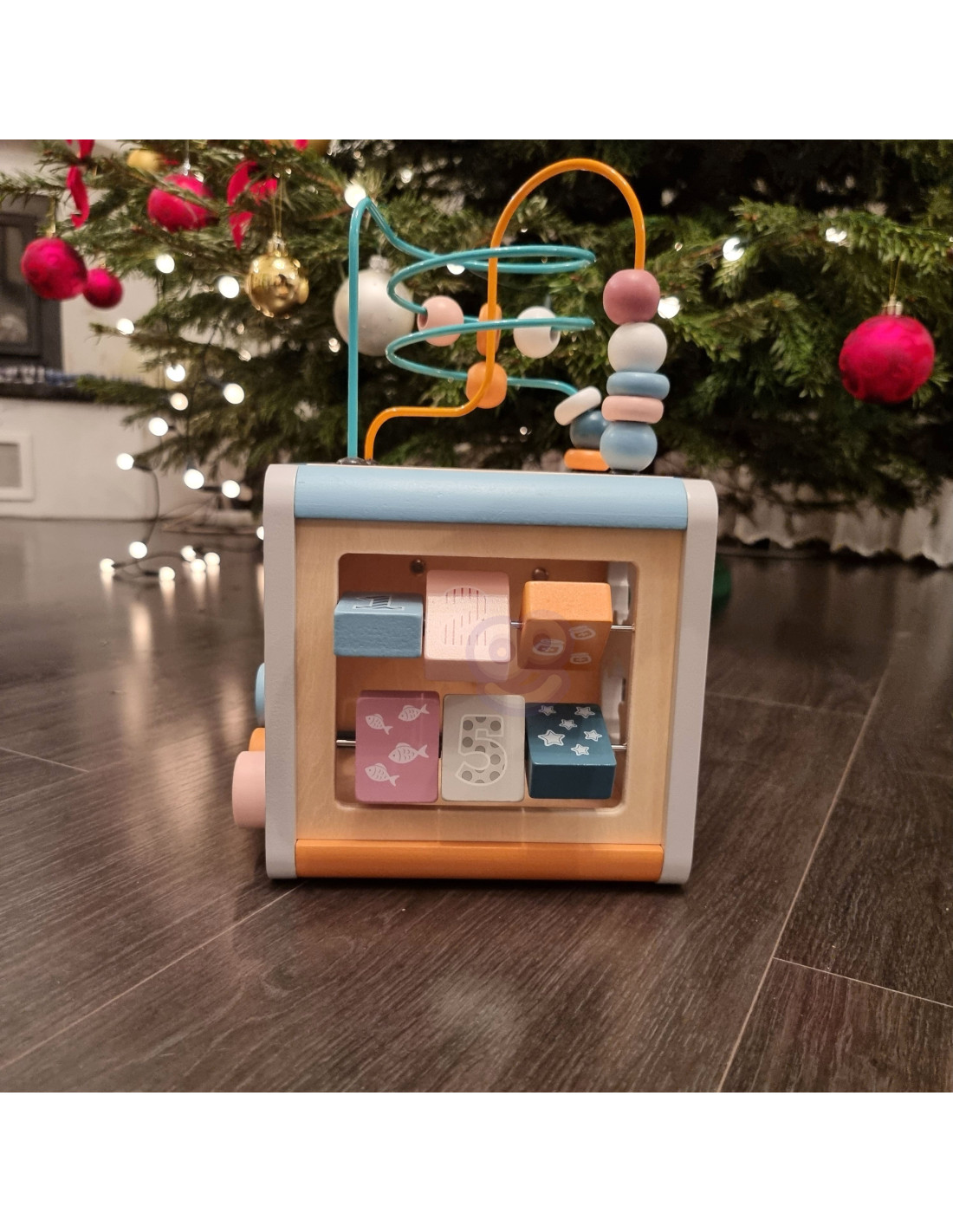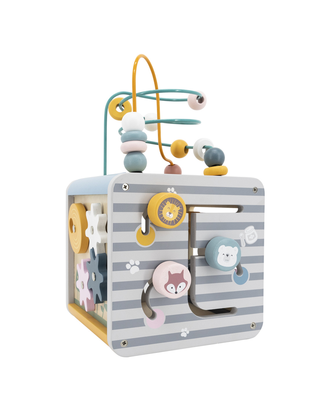 The Viga educational cube is a toy that stimulates children's senses and motor skills. By moving various elements along designated paths, children develop eye-hand coordination and physical dexterity . The toy is great for learning to count . The diverse shapes help children develop their vocabulary, identifying shapes, and emotions. The toy's large size allows multiple children to play with it simultaneously.