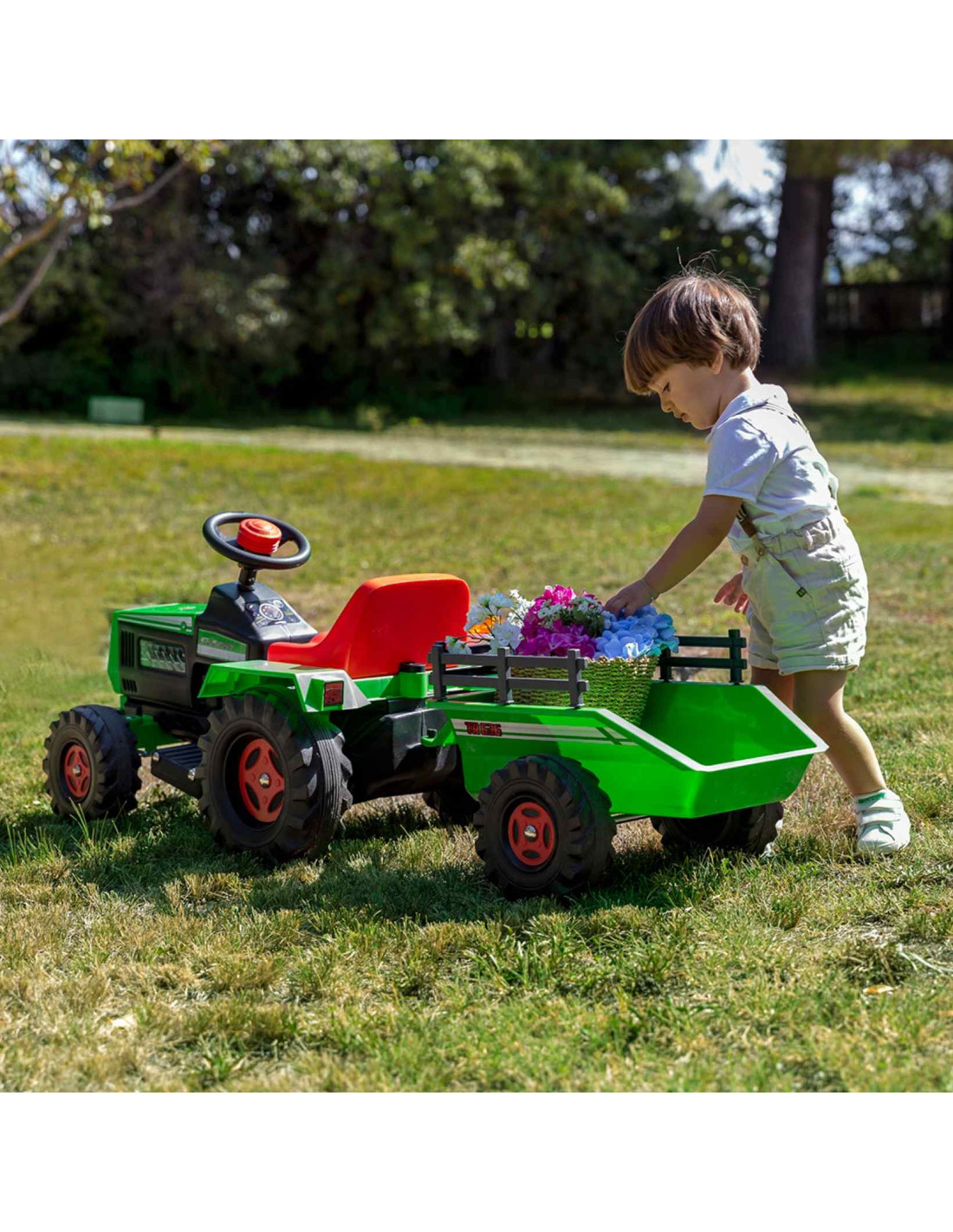Rewelacyjny Traktor Elektryczny na akumulator od renomowanej firmy INJUSA to idealny sposób na spełnienie wielu chłopięcych marzeń. W zestawie znajduje się przyczepka, którą w łatwy sposób można przyczepić do pojazdu. Dodatkowo traktorek posiada efekty świetlne i dźwiękowe. Całość wykonana z dbałością o detale, dzięki czemu zawdzięczamy jego realistyczny wygląd.