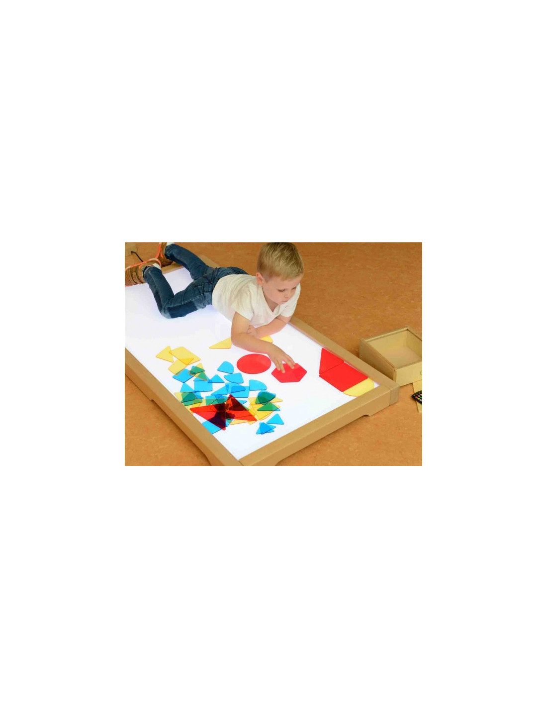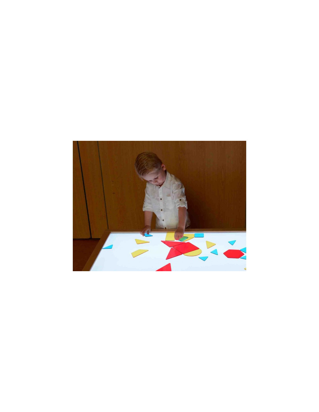 Zestaw półprzezroczystych kolorowych płytek o różnych kształtach, dzięki czemu nauczanie kompozycji geometrycznych kształtów jest proste i łatwe. Kawałki wykonane są z trwałego akrylu w precyzyjnych kolorach, dzięki czemu dzieci mogą również zdobywać wiedzę o mieszaniu kolorów, np. czerwony + żółty = pomarańczowy. Idealne połączenie z zestawem z panelem świetlnym LED Masterkidz Education. Zestaw jest dostarczany w solidnym drewnianym pudełku co ułatwia jego przechowywanie.