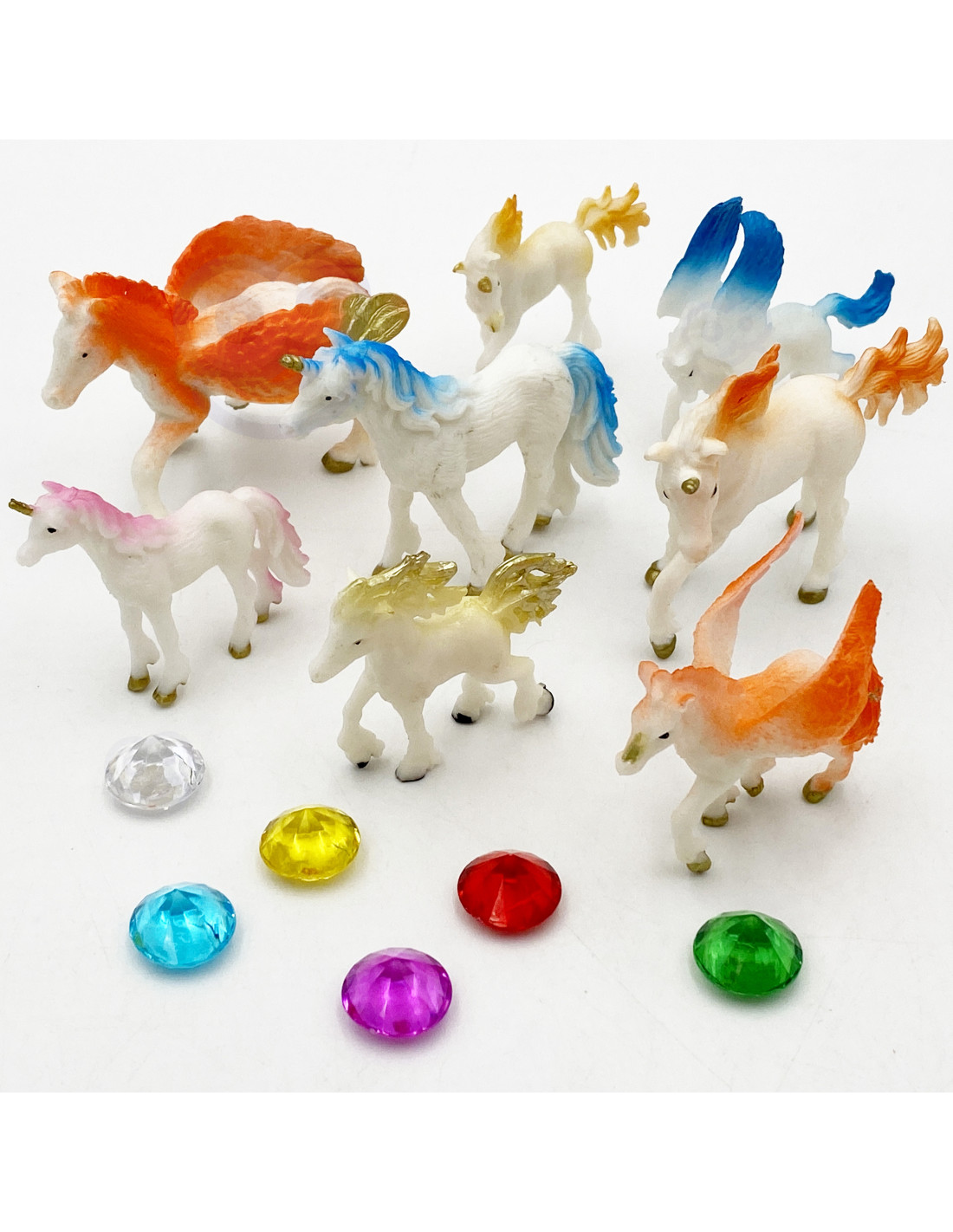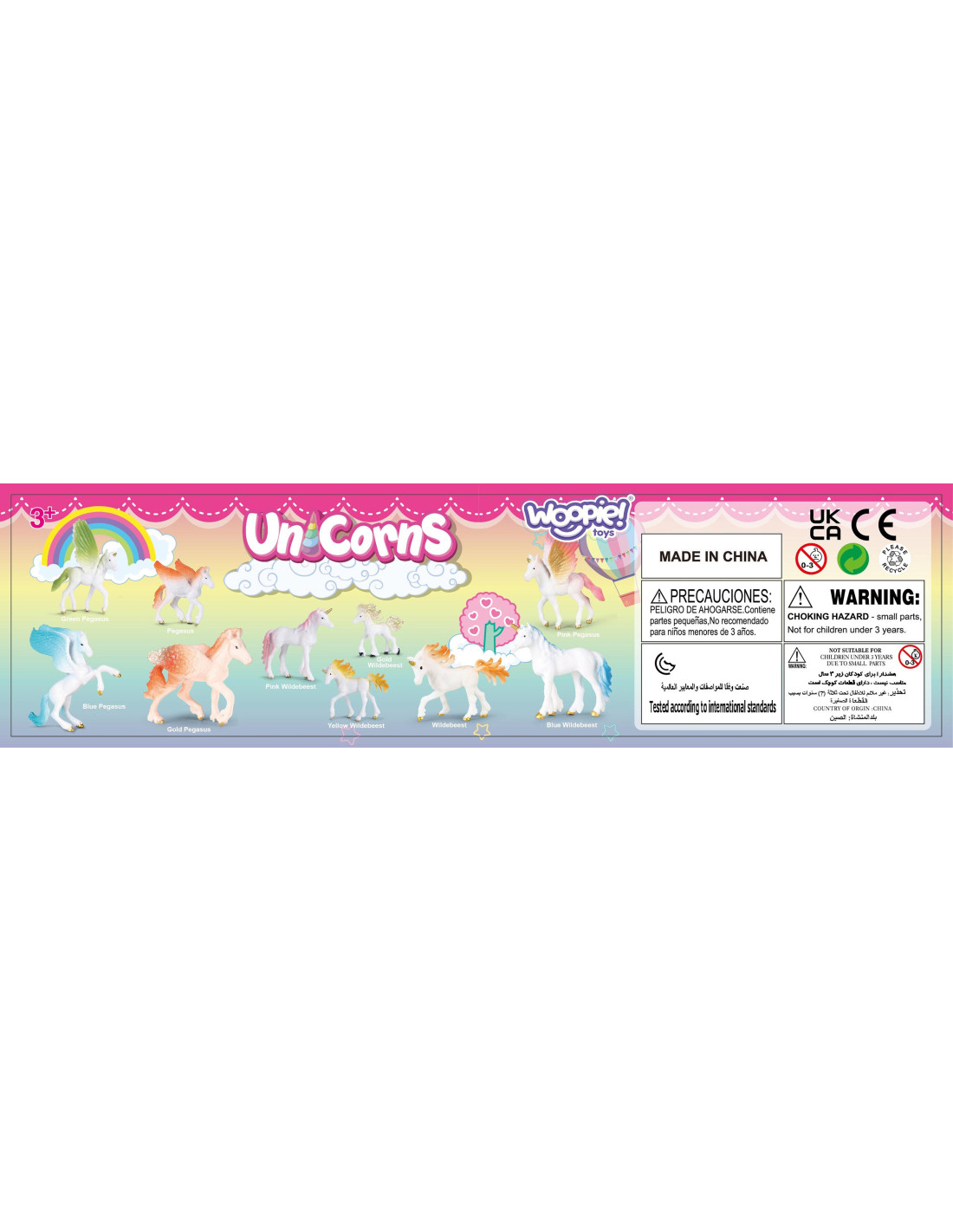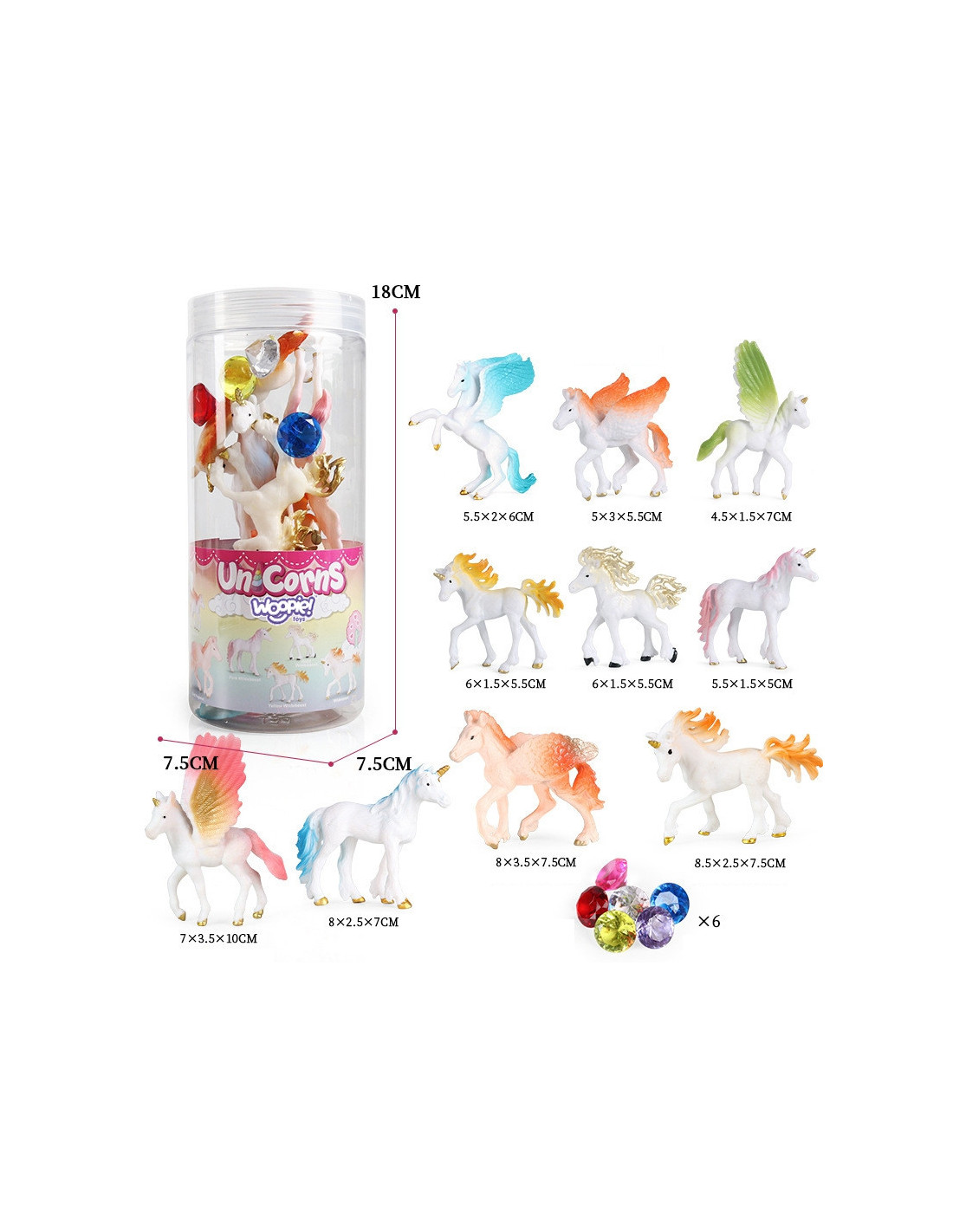 The WOOPIE Figurine Set is the perfect set for any unicorn fan. The set includes 10 unicorn horses and 6 crystals/diamonds . These realistic- looking figurines will enhance a young collector's collection, serve an educational purpose , and provide fun that will expand the scope of your little one's imagination and creativity.