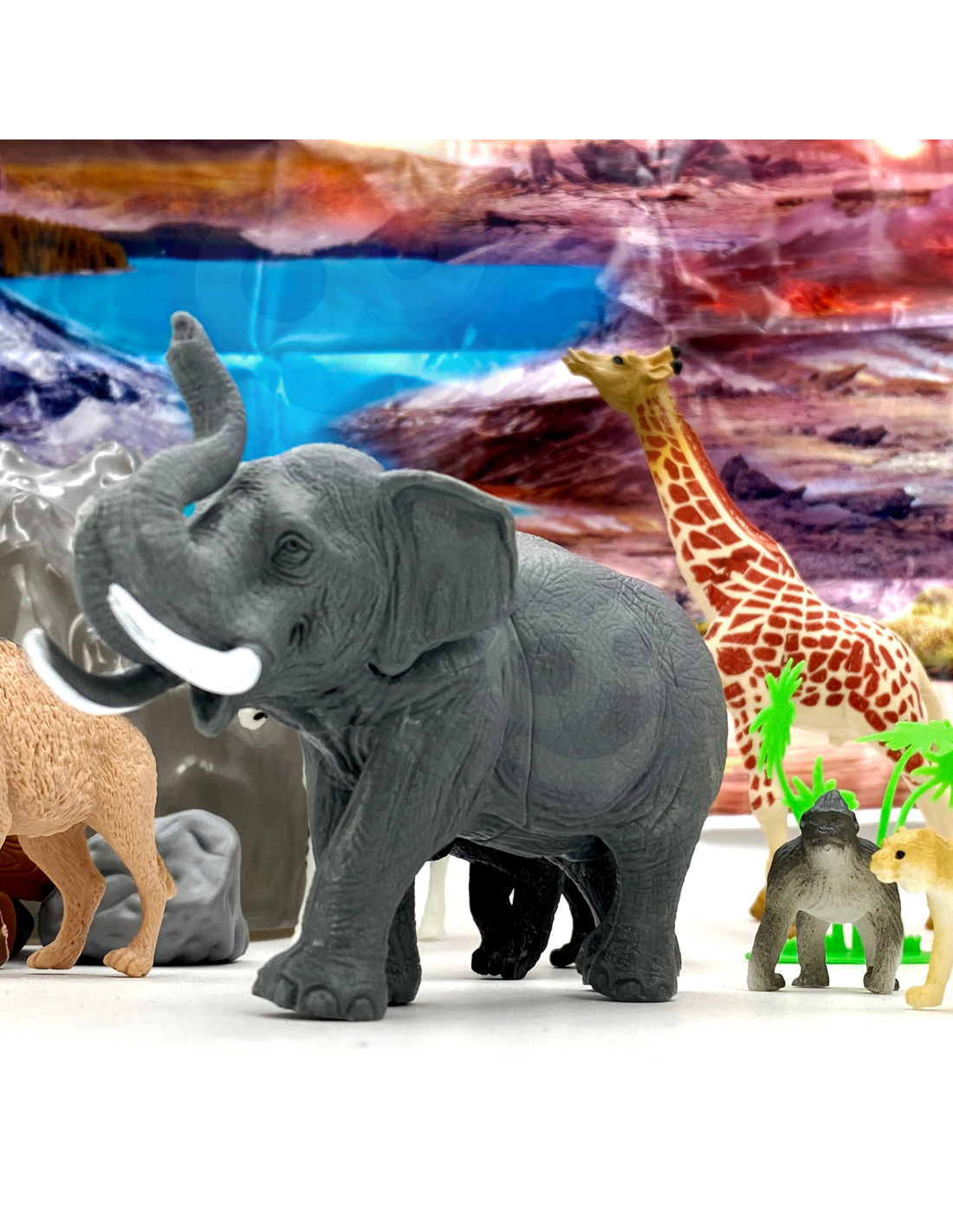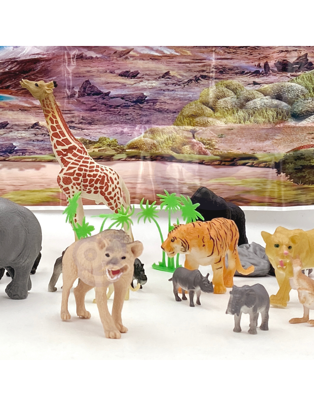 The WOOPIE Figurine Set is the perfect set for any Safari animal fan. The set includes animals and a Safari map. These realistic-looking figurines will enhance a young collector's collection, serve an educational purpose , and provide fun that will expand the scope of your child's imagination and creativity.